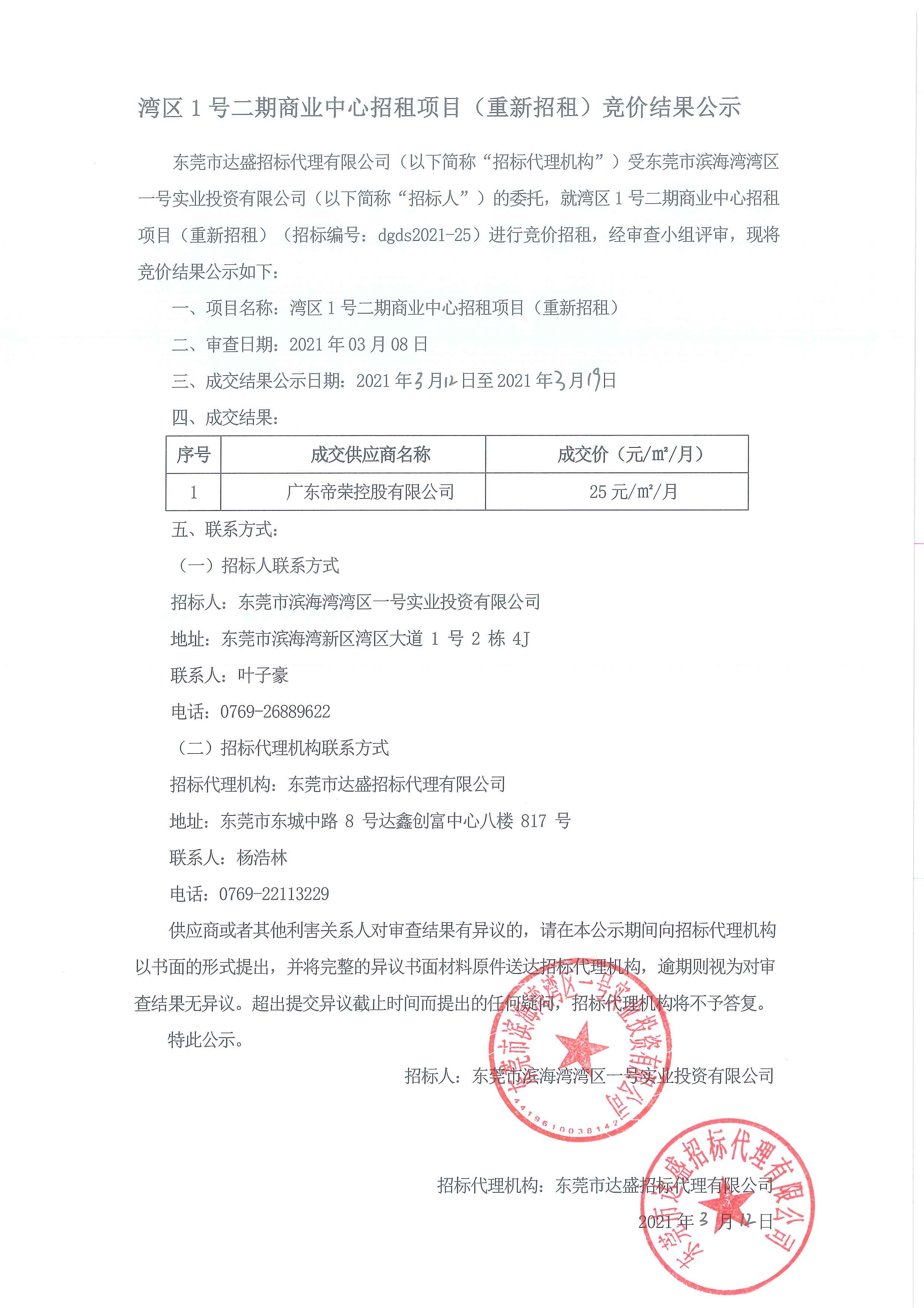 灣區(qū)1號(hào)二期商業(yè)中心招租項(xiàng)目(重新招租)競價(jià)結(jié)果公示