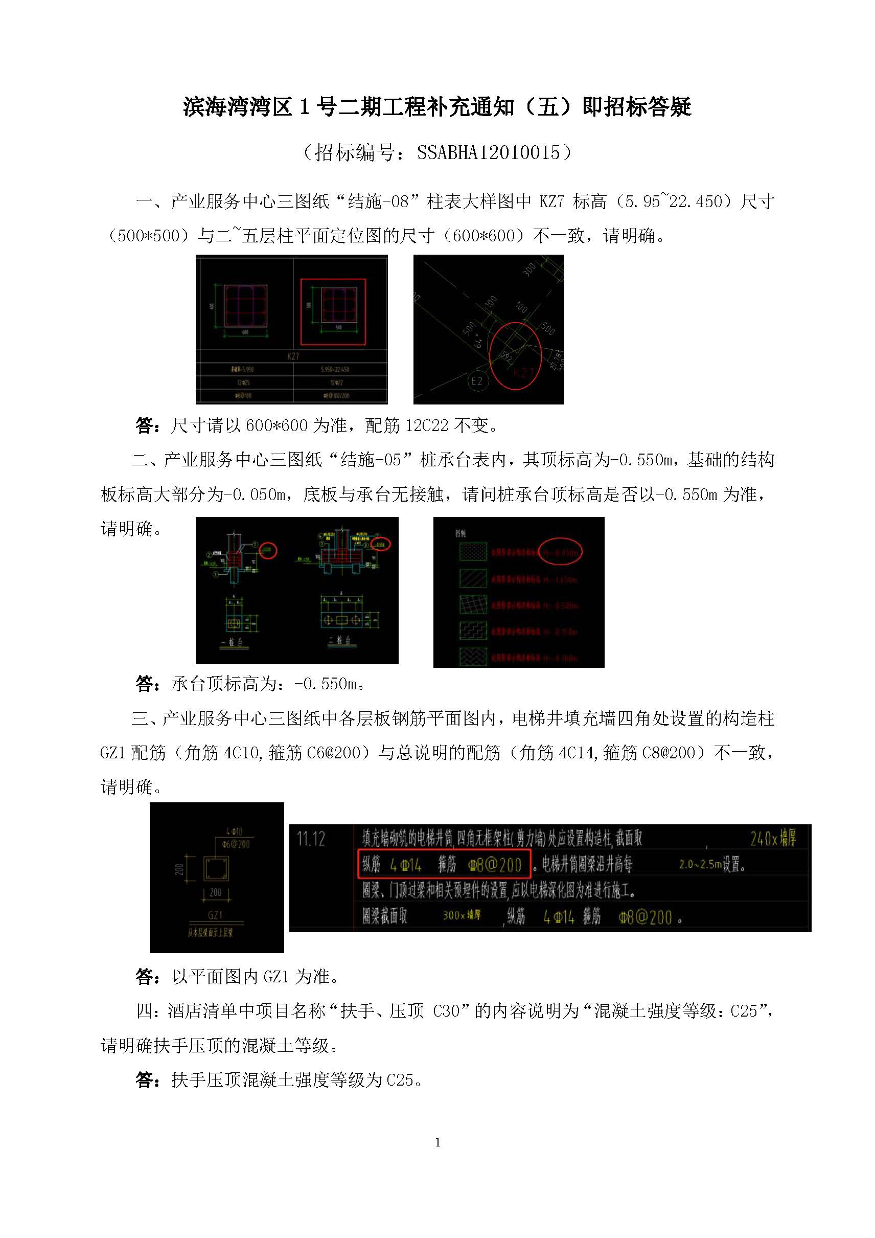 濱海灣灣區(qū)1號(hào)二期工程補(bǔ)充通知(五)即招標(biāo)答疑(招標(biāo)編號(hào):SSABHA12010015)