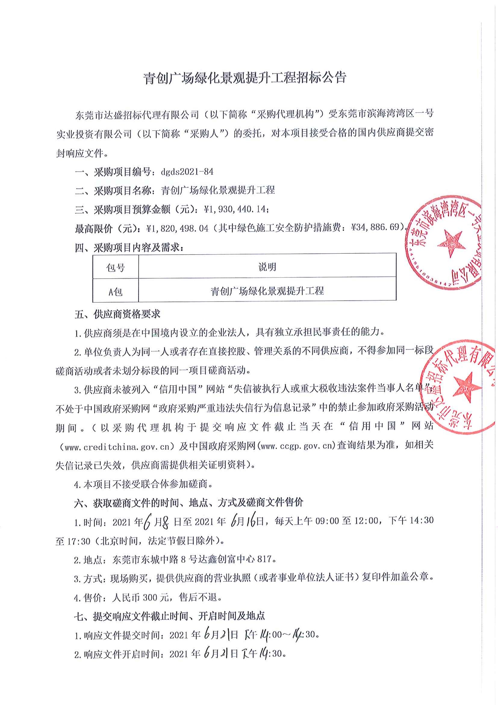 青創(chuàng)廣場綠化景觀提升工程招標(biāo)公告