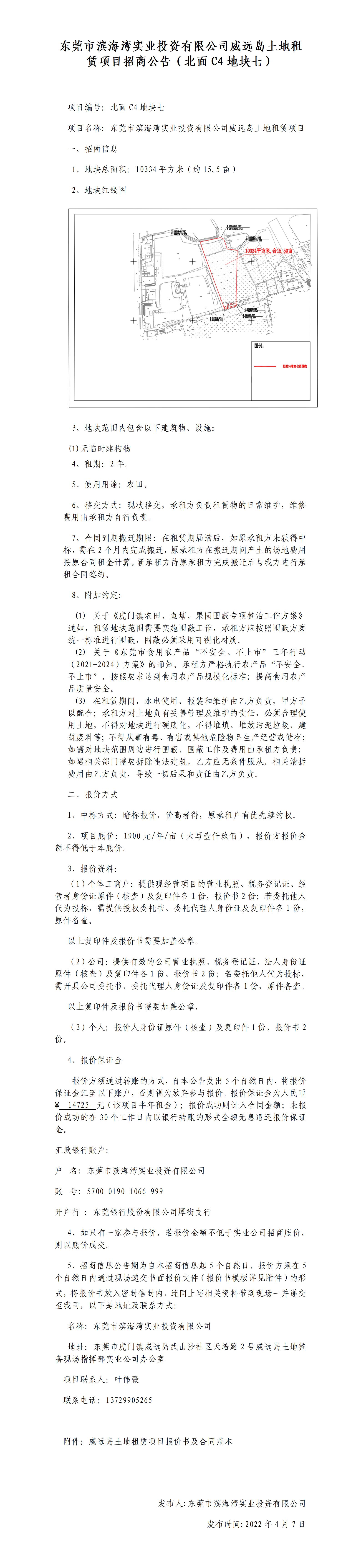 東莞市濱海灣實業(yè)投資有限公司威遠島土地租賃項目招商公告(北面C4地塊七)