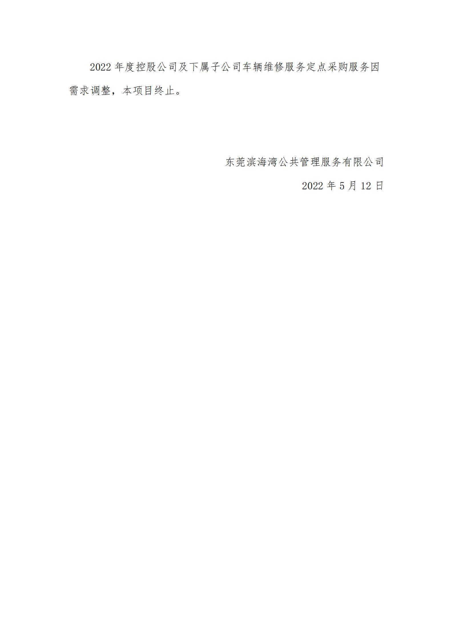 2022年度控股公司及下屬子公司車輛維修服務(wù)定點采購服務(wù)終止公告