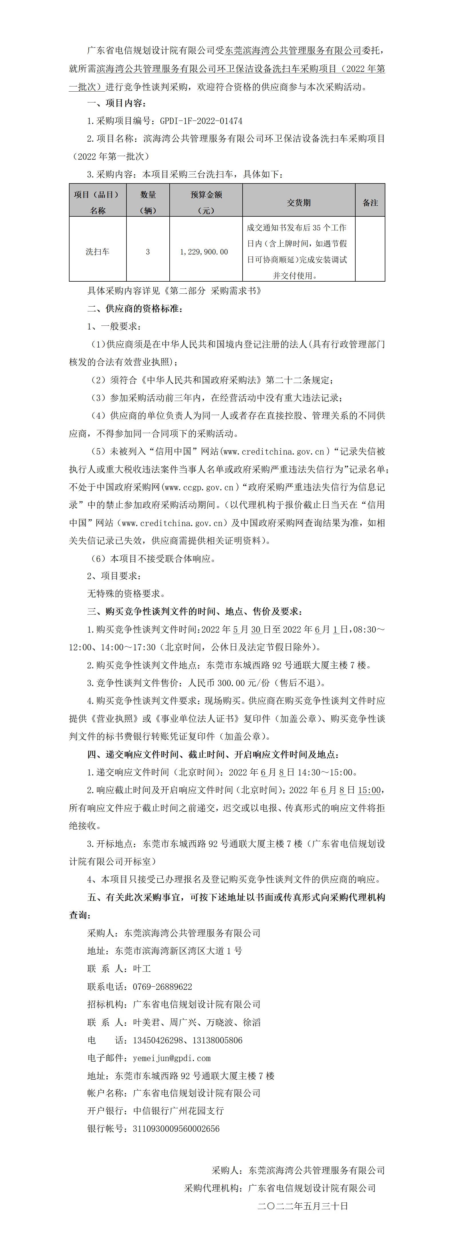 濱海灣公共管理服務(wù)有限公司環(huán)衛(wèi)保潔設(shè)備洗掃車采購項目(2022年第一批次)采購公告