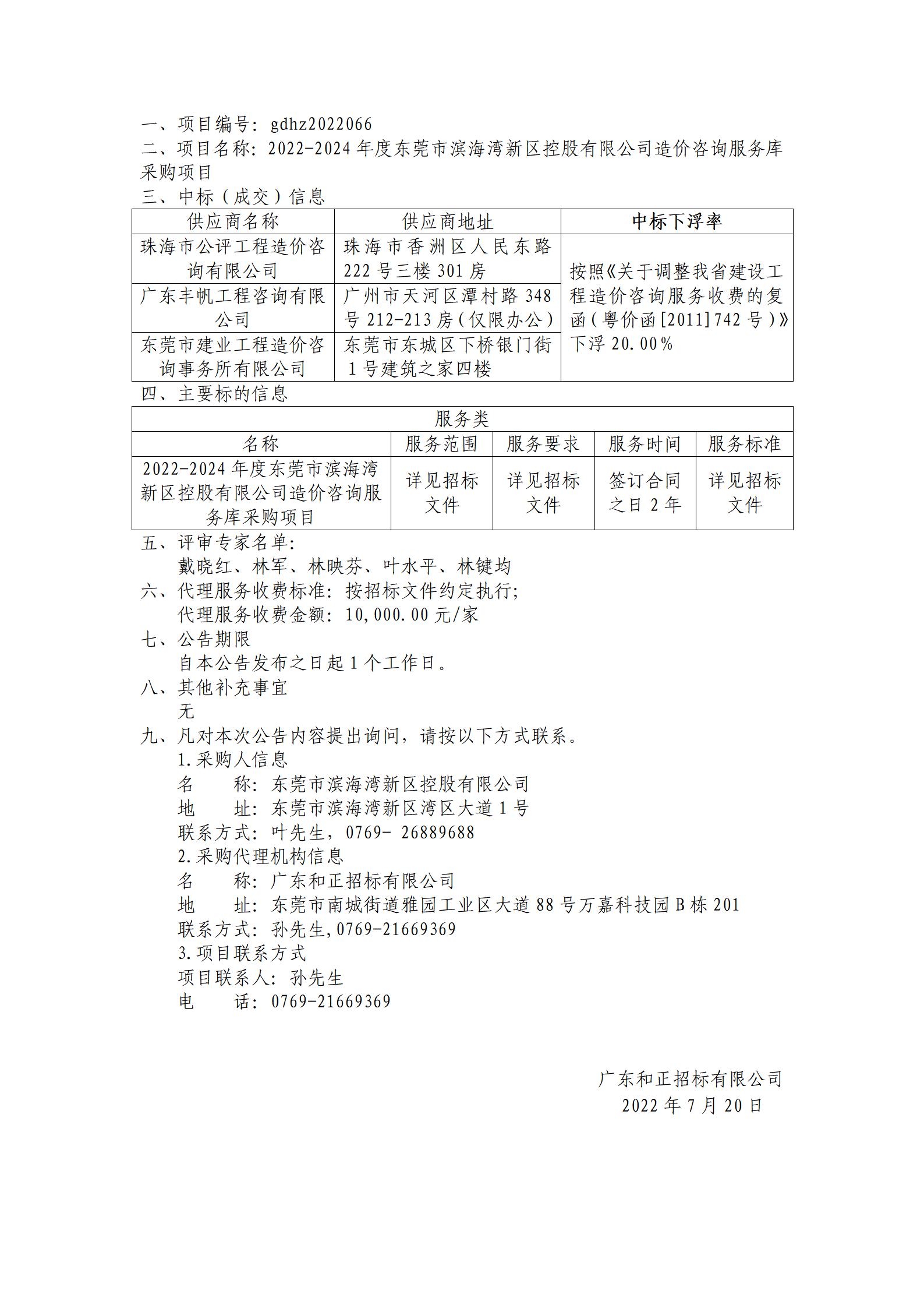 2022-2024年度東莞市濱海灣新區(qū)控股有限公司造價咨詢服務庫采購項目中標(成交)結果公告