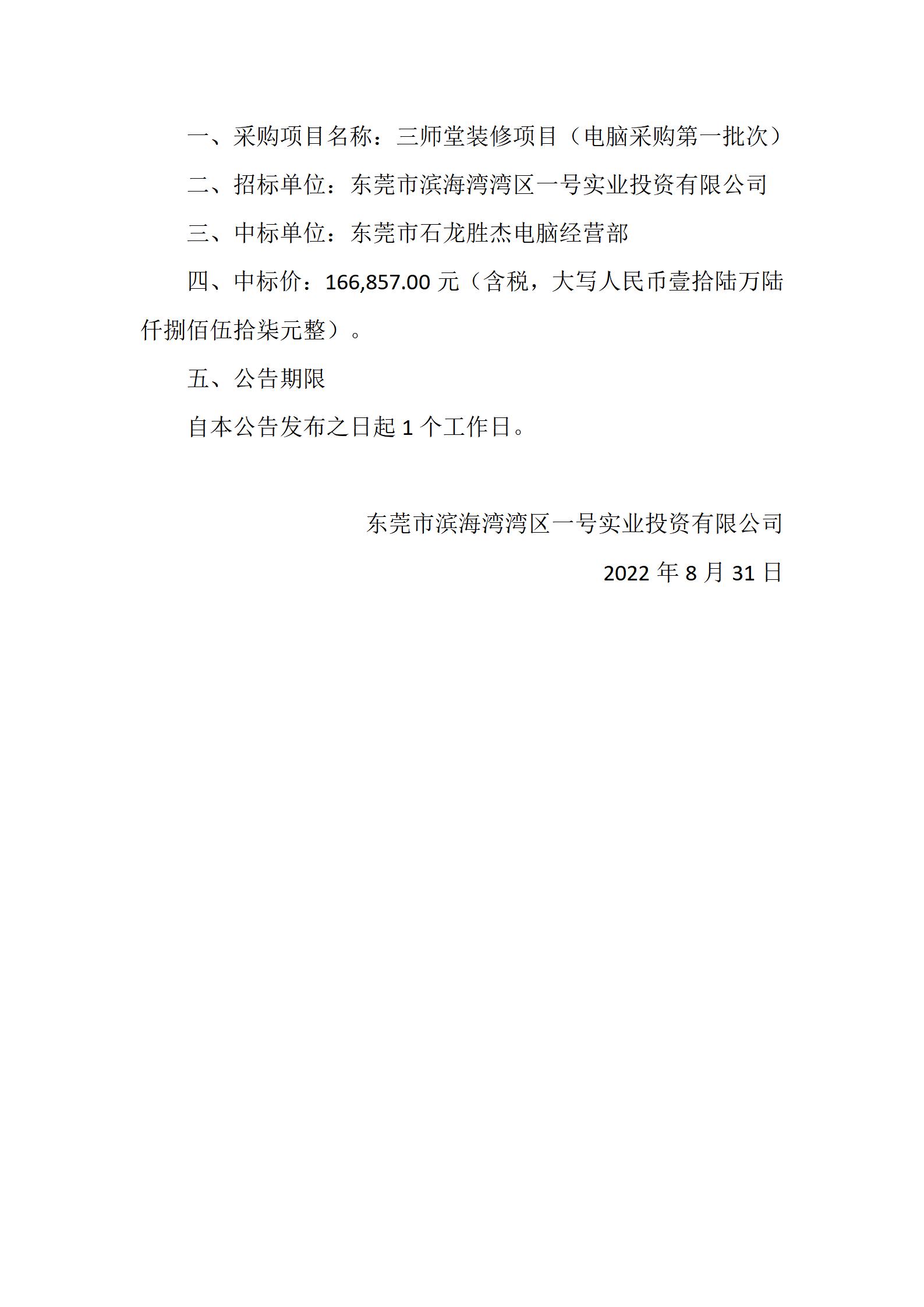 三師堂裝修項目(電腦采購第一批次)結(jié)果公告