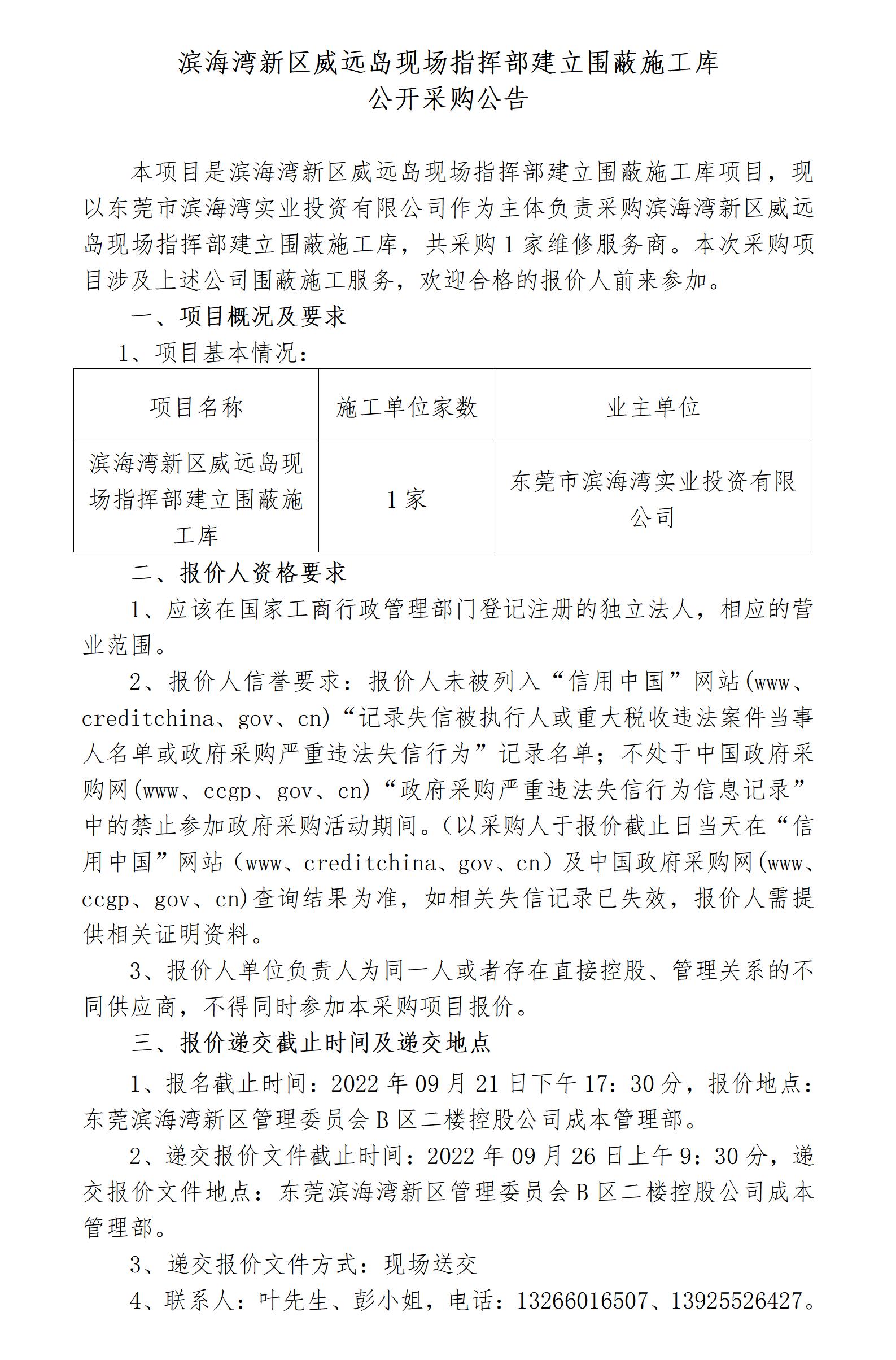 濱海灣新區(qū)威遠(yuǎn)島現(xiàn)場(chǎng)指揮部建立圍蔽施工庫公開報(bào)價(jià)函