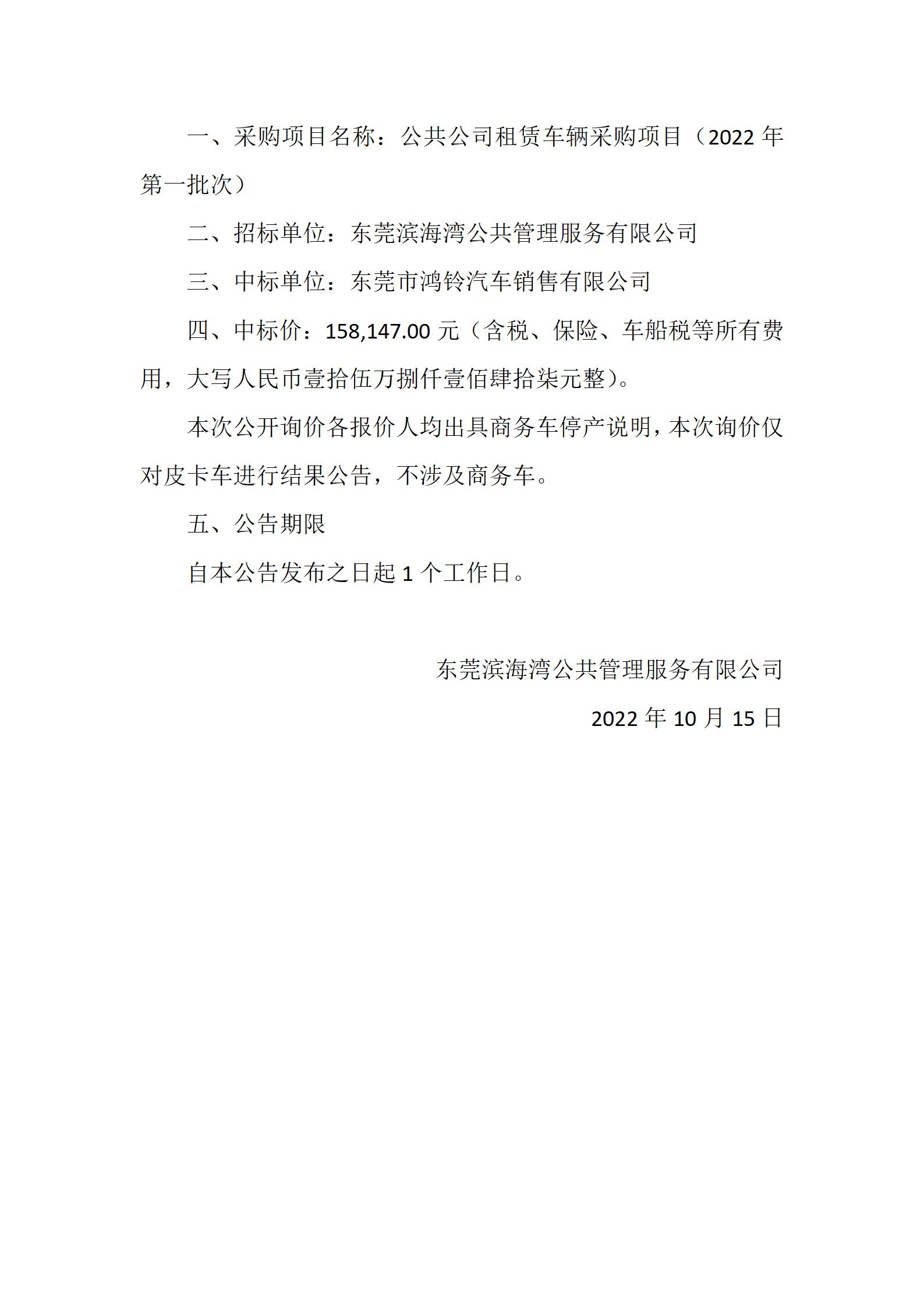 公共公司租賃車輛采購項目(2022年第一批次)結(jié)果公告