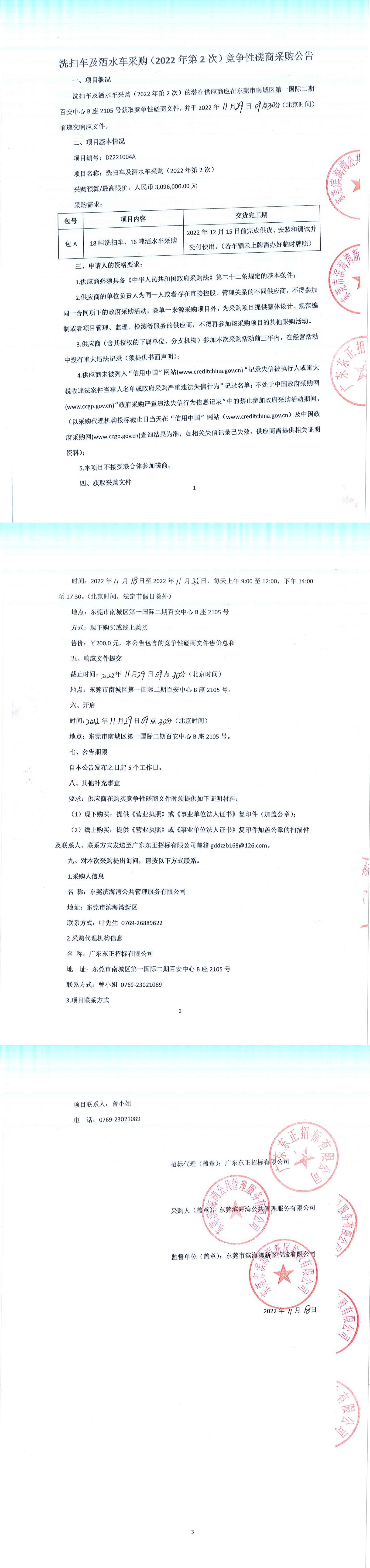 洗掃車及灑水車采購(2022年第2次)競爭性磋商采購公告