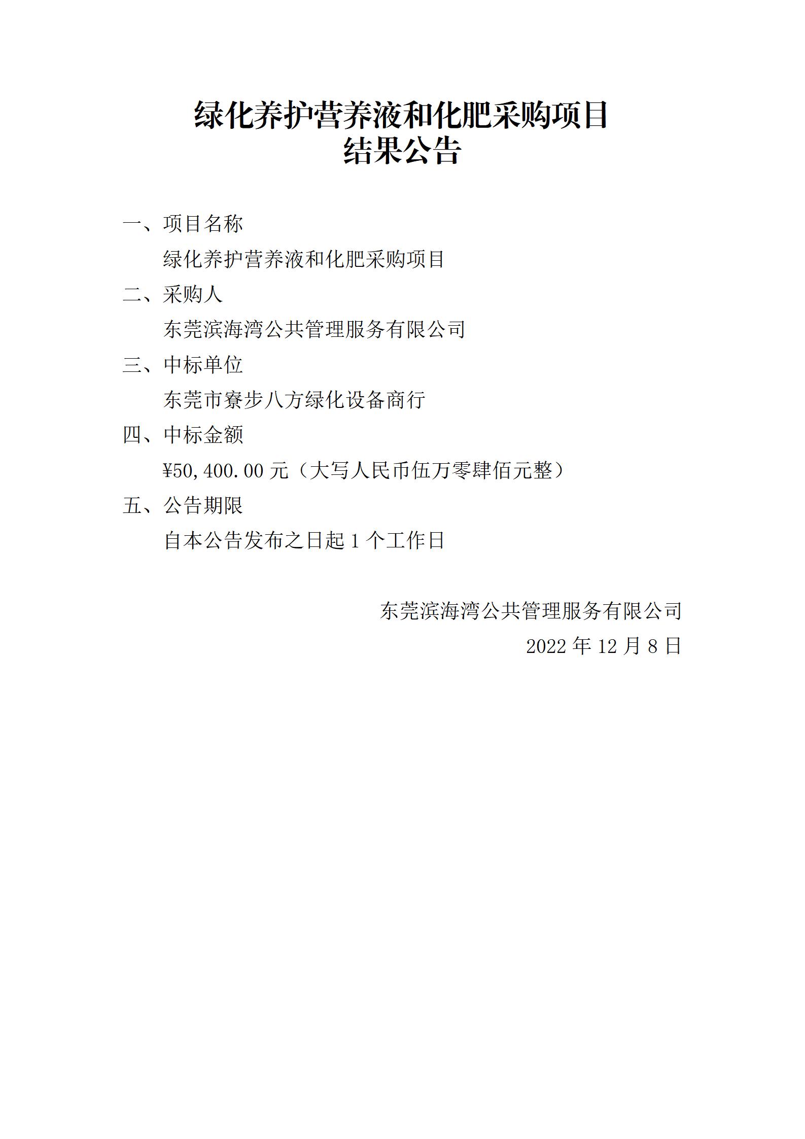 綠化養(yǎng)護(hù)營養(yǎng)液和化肥采購項(xiàng)目結(jié)果公告