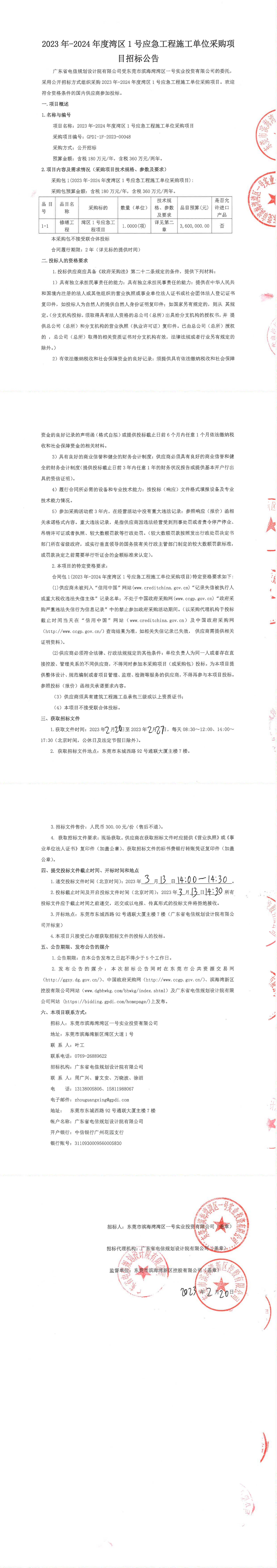 2023年-2024年度灣區(qū)1號應(yīng)急工程施工單位采購項目公開招標(biāo)公告