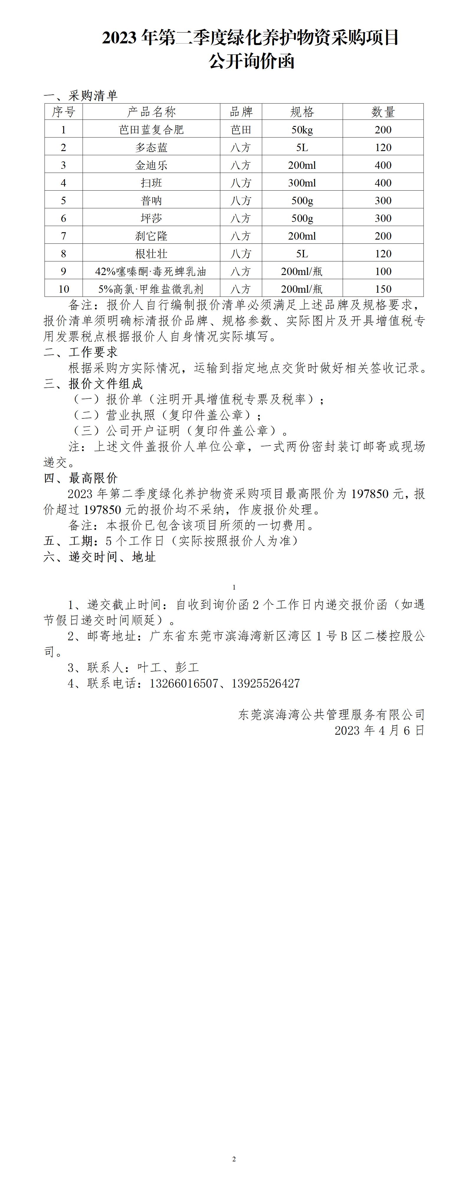 2023年第二季度綠化養(yǎng)護(hù)物資采購(gòu)項(xiàng)目公開(kāi)詢(xún)價(jià)函