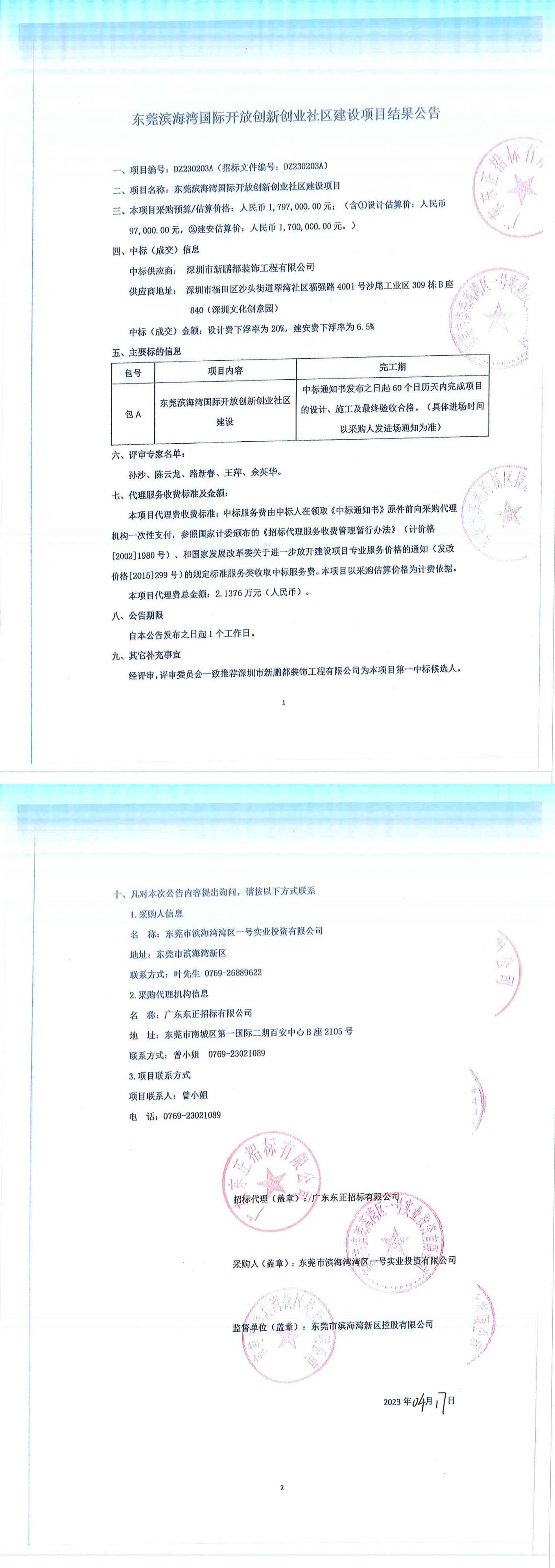 東莞濱海灣國際開放創(chuàng)新創(chuàng)業(yè)社區(qū)建設(shè)項目結(jié)果公告