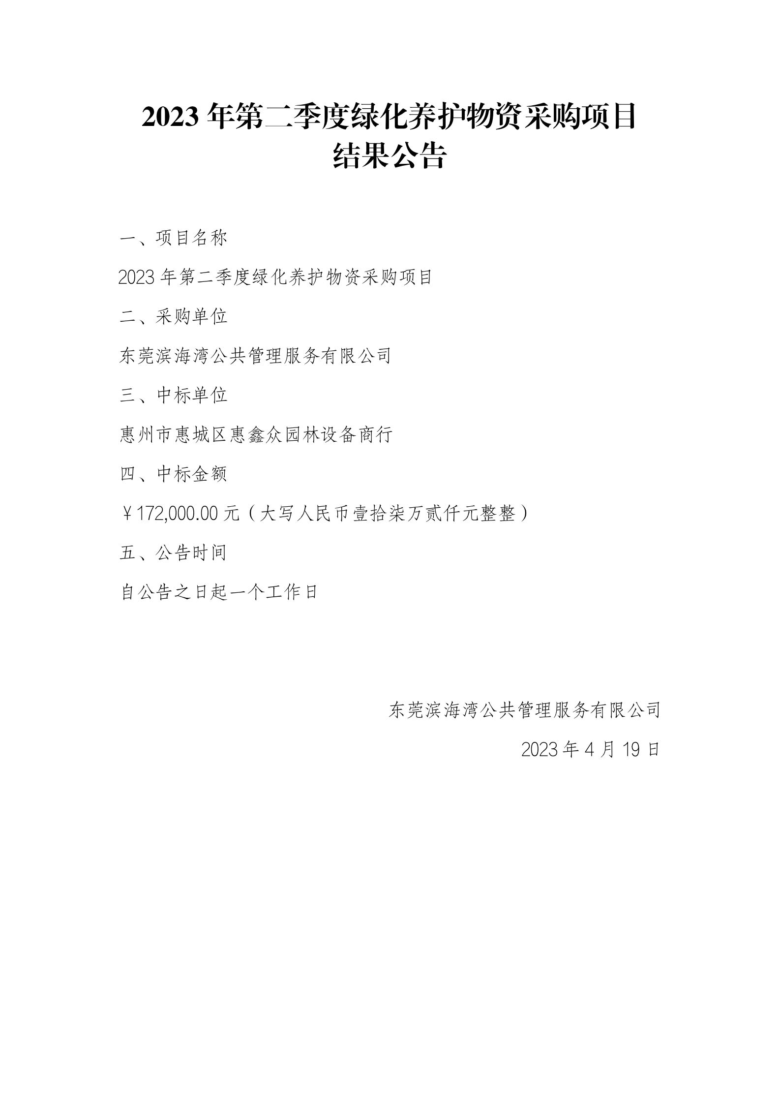 2023年第二季度綠化養(yǎng)護物資采購項目結(jié)果公告