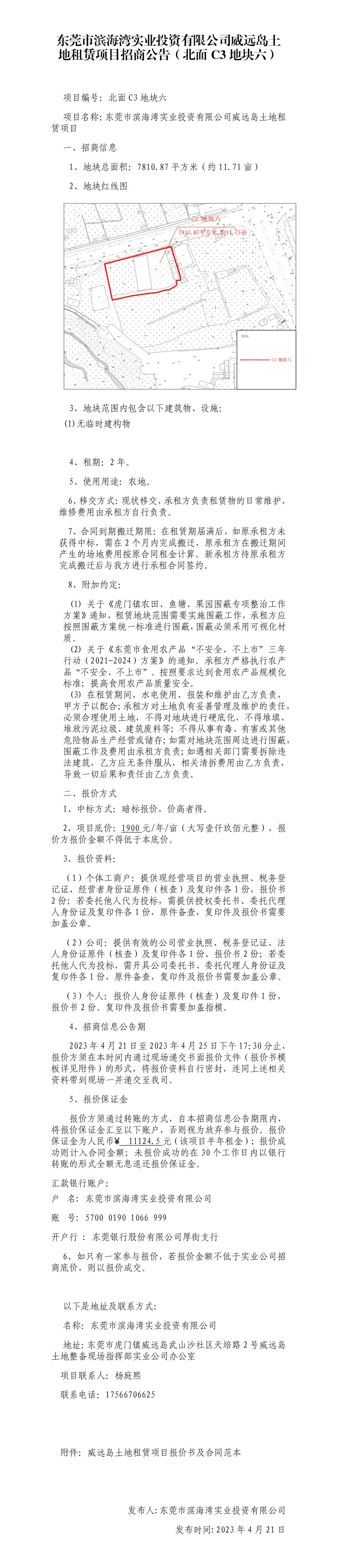 東莞市濱海灣實(shí)業(yè)投資有限公司威遠(yuǎn)島土地租賃項(xiàng)目招商公告(北面C3地塊六)