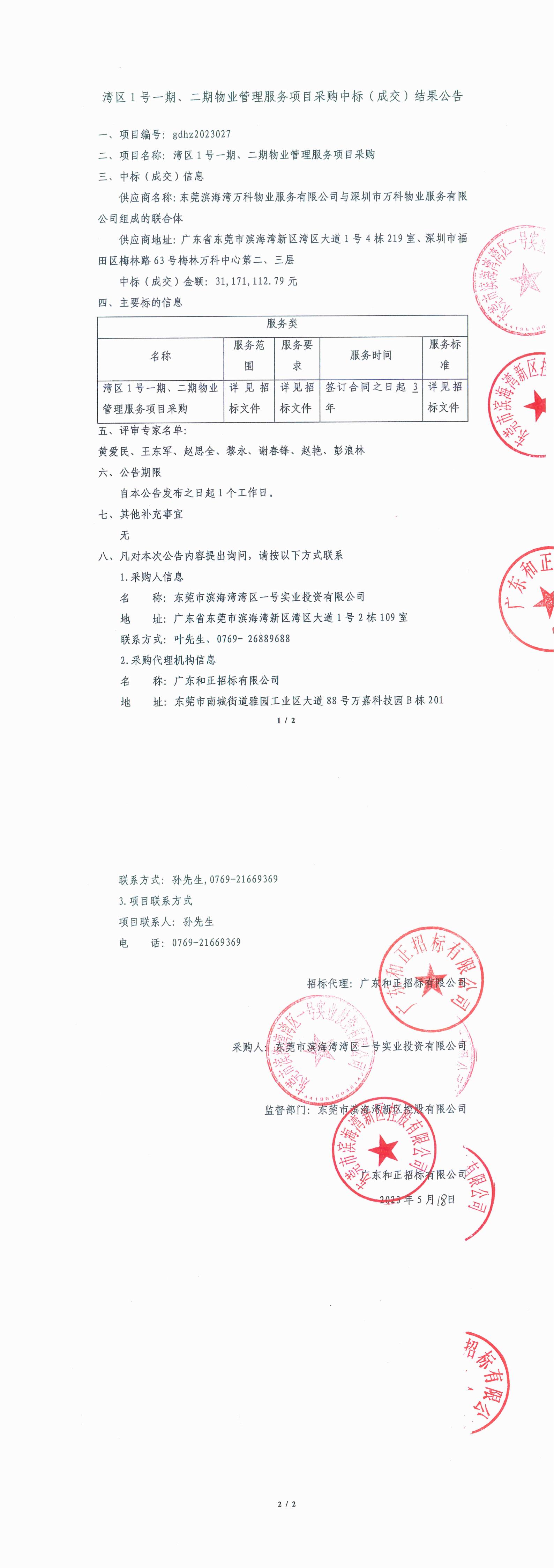 灣區(qū)1號一期、二期物業(yè)管理服務(wù)項目采購中標(成交)結(jié)果公告