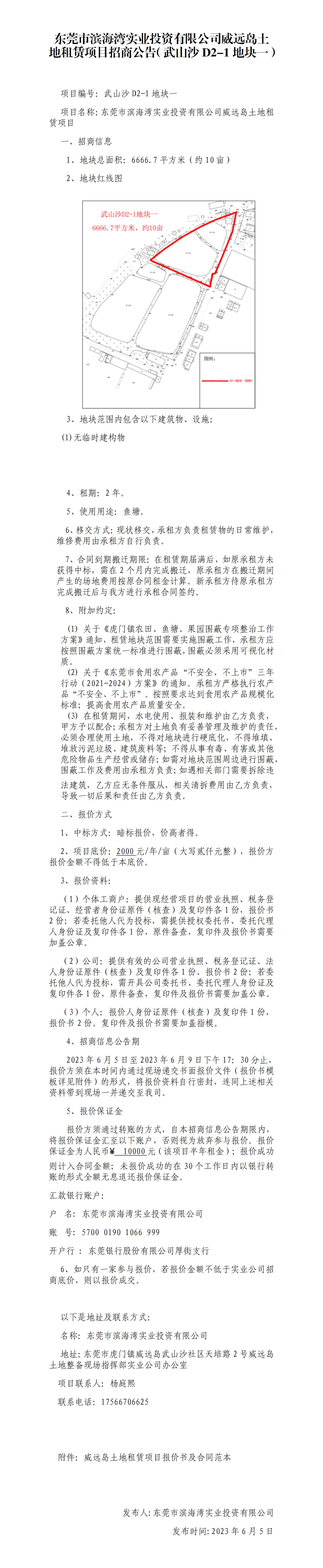 東莞市濱海灣實(shí)業(yè)投資有限公司威遠(yuǎn)島土地租賃項(xiàng)目招商公告(武山沙D2-1地塊一)