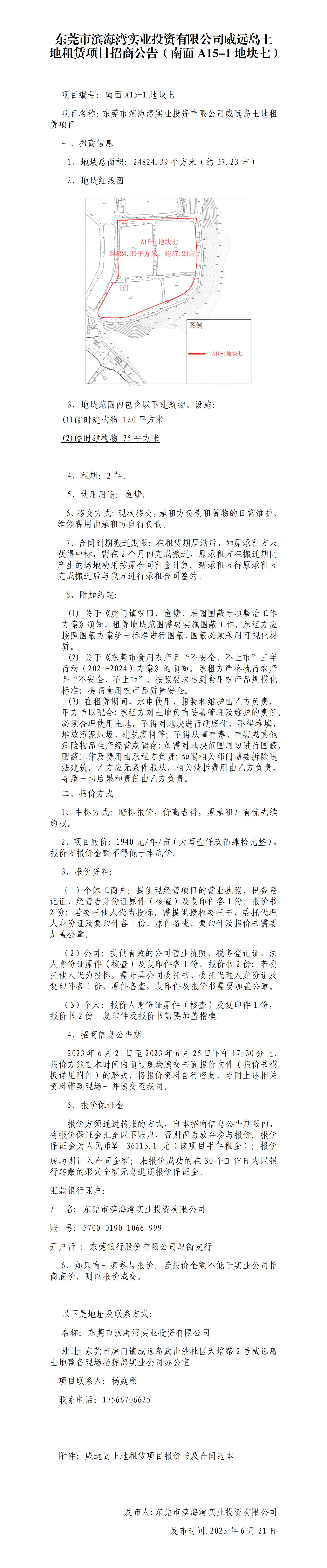 東莞市濱海灣實業(yè)投資有限公司威遠島土地租賃項目招商公告(南面A15-1地塊七)