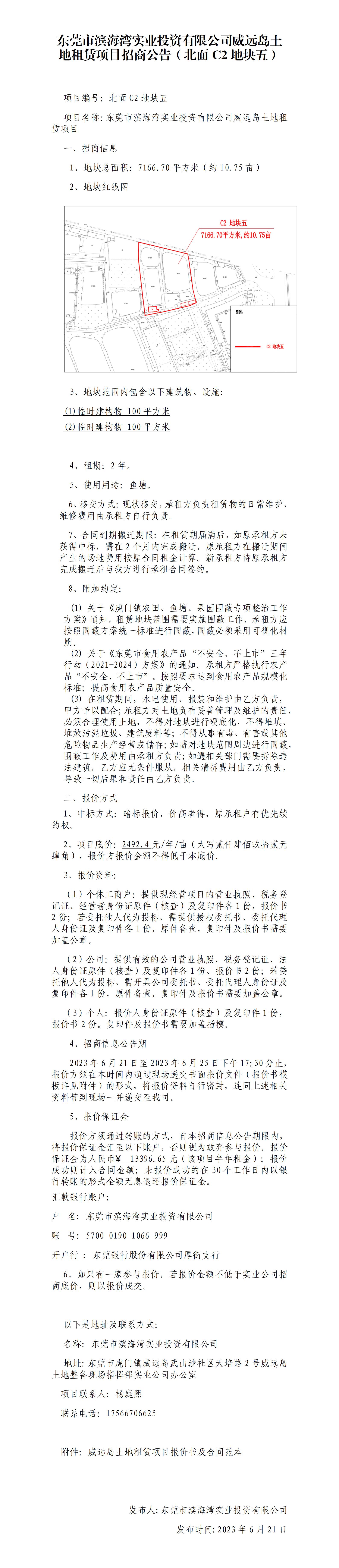 東莞市濱海灣實(shí)業(yè)投資有限公司威遠(yuǎn)島土地租賃項(xiàng)目招商公告(北面C2地塊五)
