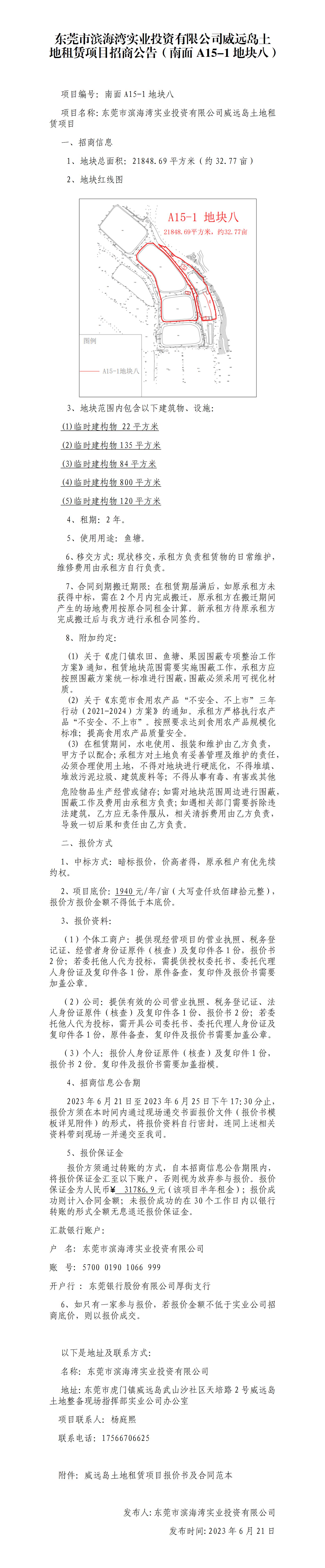 東莞市濱海灣實(shí)業(yè)投資有限公司威遠(yuǎn)島土地租賃項(xiàng)目招商公告(南面A15-1地塊八)