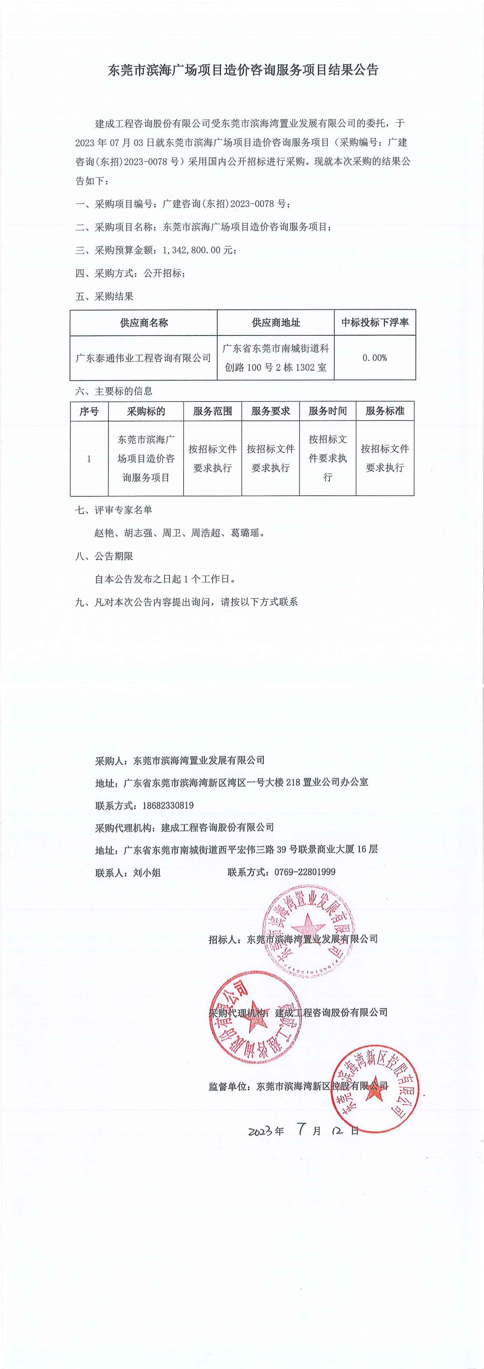 東莞市濱海廣場(chǎng)項(xiàng)目造價(jià)咨詢(xún)服務(wù)項(xiàng)目結(jié)果公告