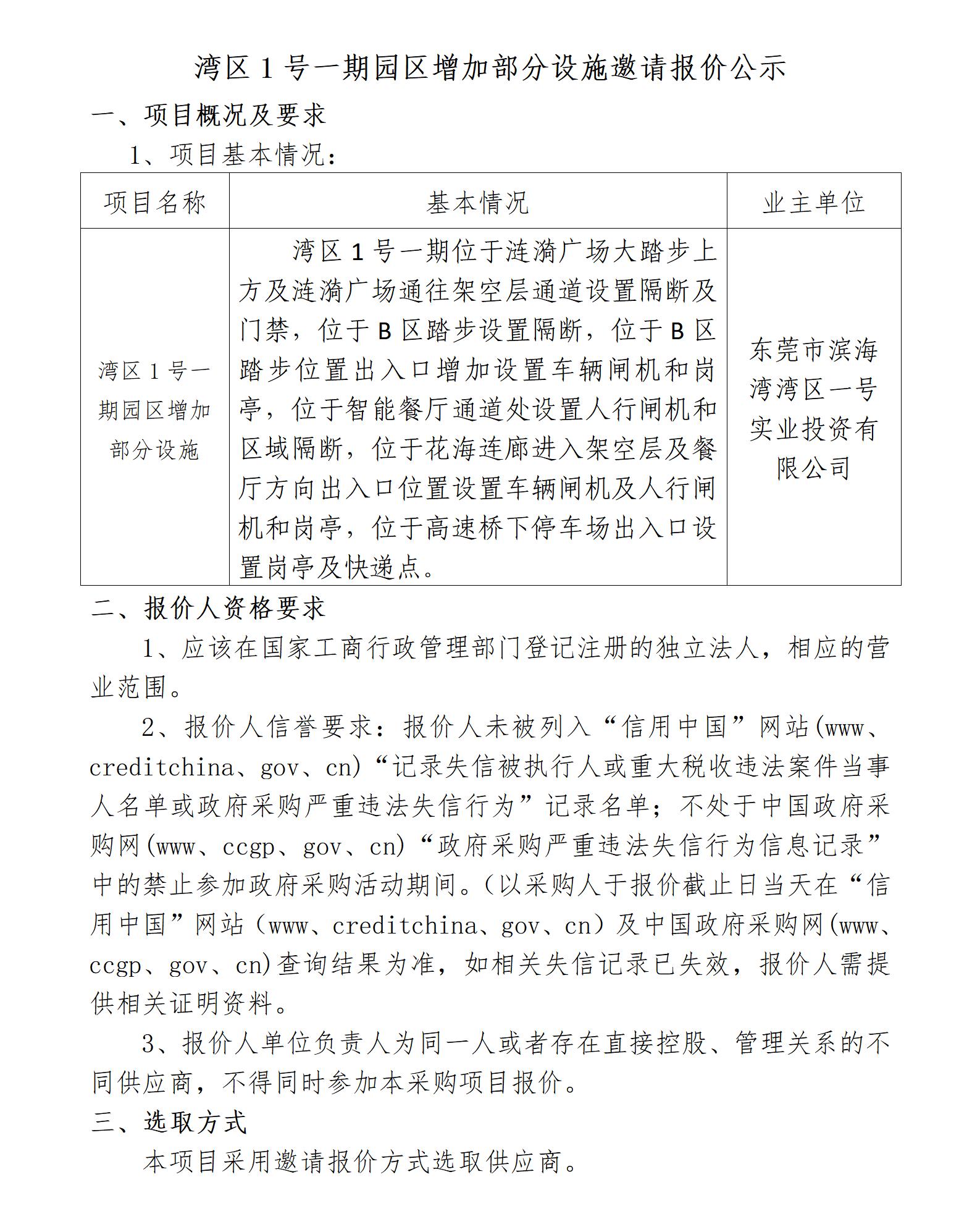 灣區(qū)1號一期園區(qū)增加部分設(shè)施邀請報價公示