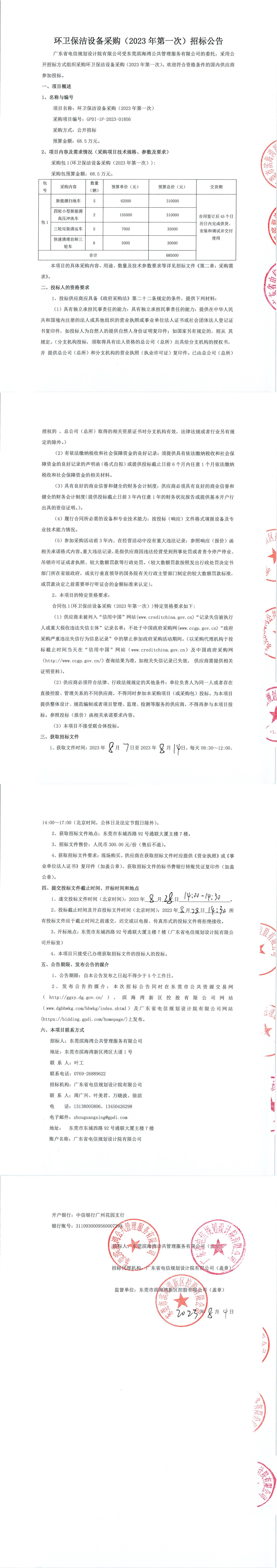 環(huán)衛(wèi)保潔設(shè)備采購(gòu)(2023年第一次)招標(biāo)公告