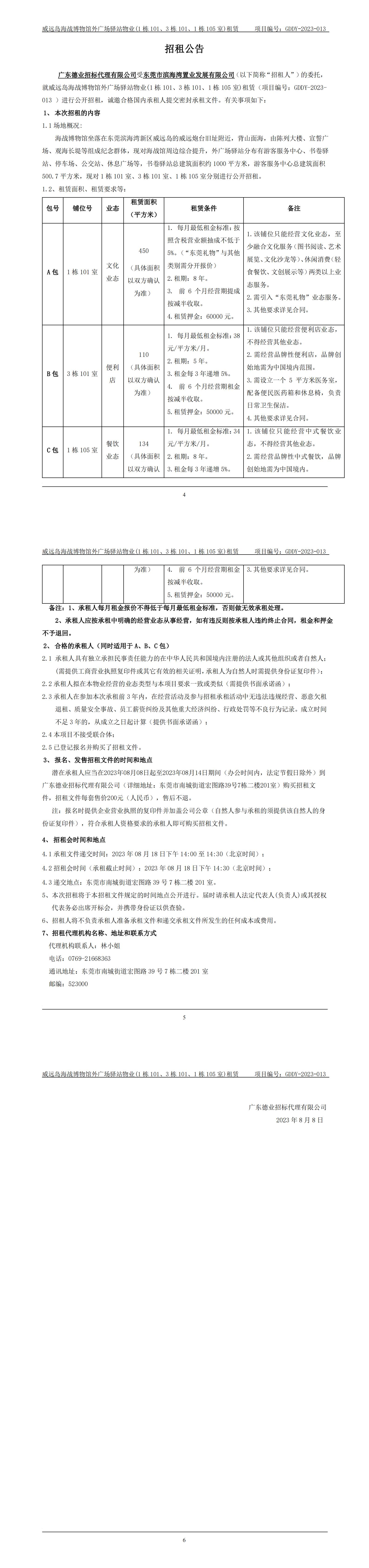 威遠(yuǎn)島海戰(zhàn)博物館外廣場(chǎng)驛站物業(yè)(1棟101、3棟101、1棟105室)租賃招租文件