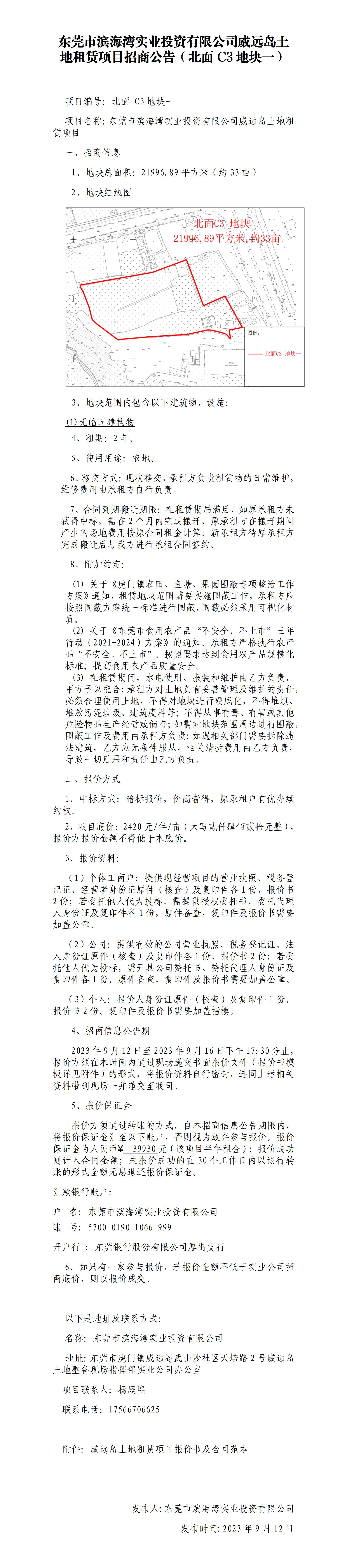 東莞市濱海灣實(shí)業(yè)投資有限公司威遠(yuǎn)島土地租賃項(xiàng)目招商公告(北面C3地塊一)