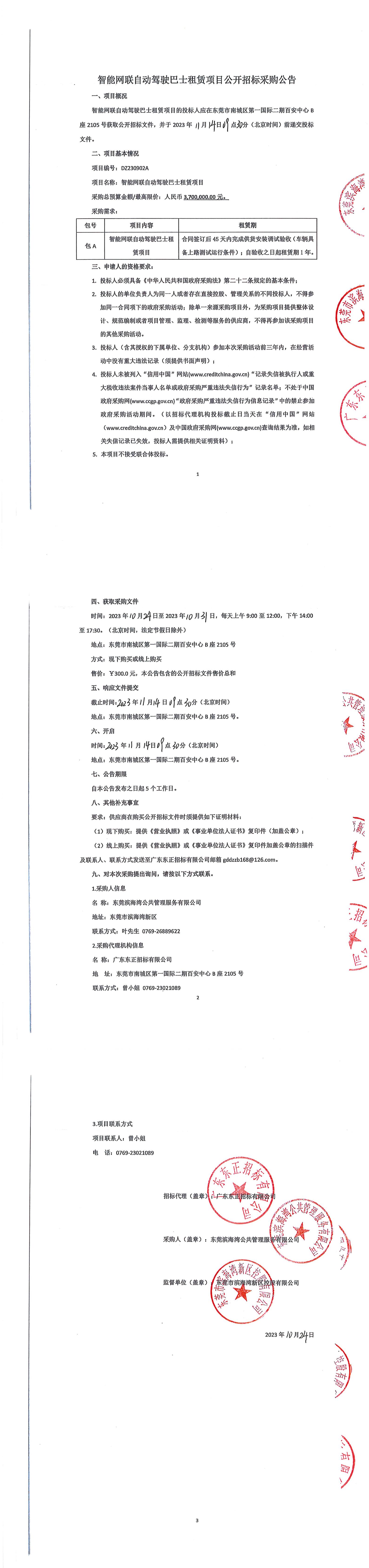 智能網(wǎng)聯(lián)自動駕駛巴士租賃項目公開招標采購公告