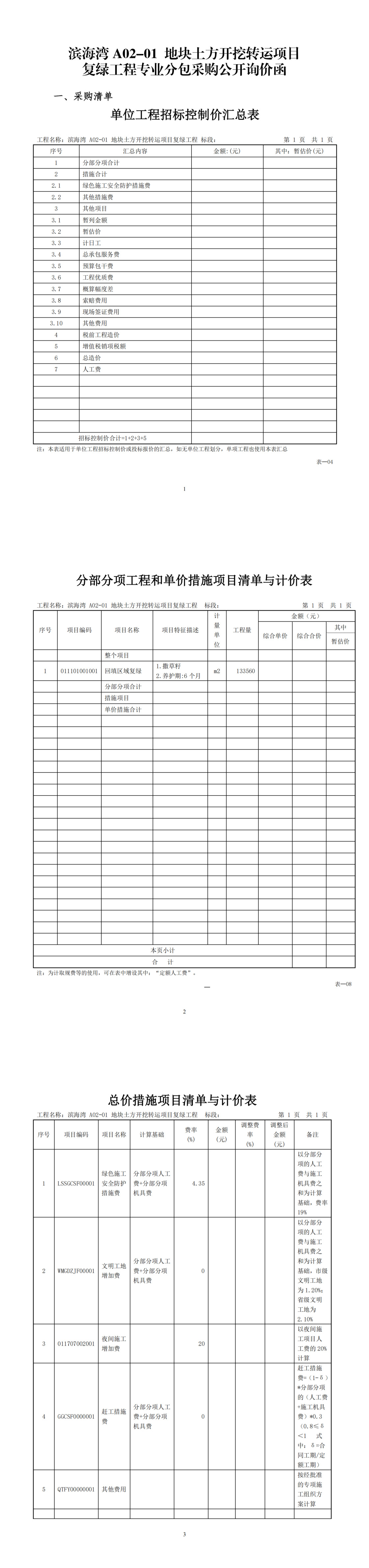 濱海灣 A02-01 地塊土方開挖轉運項目復綠工程專業(yè)分包采購公開詢價函