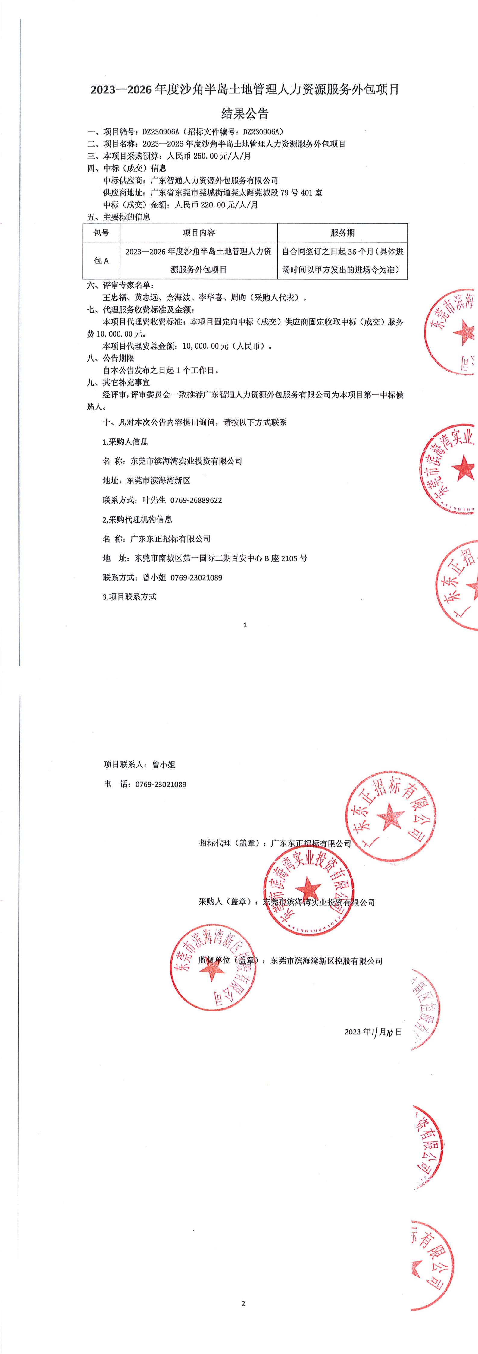 2023—2026年度沙角半島土地管理人力資源服務(wù)外包項(xiàng)目結(jié)果公告