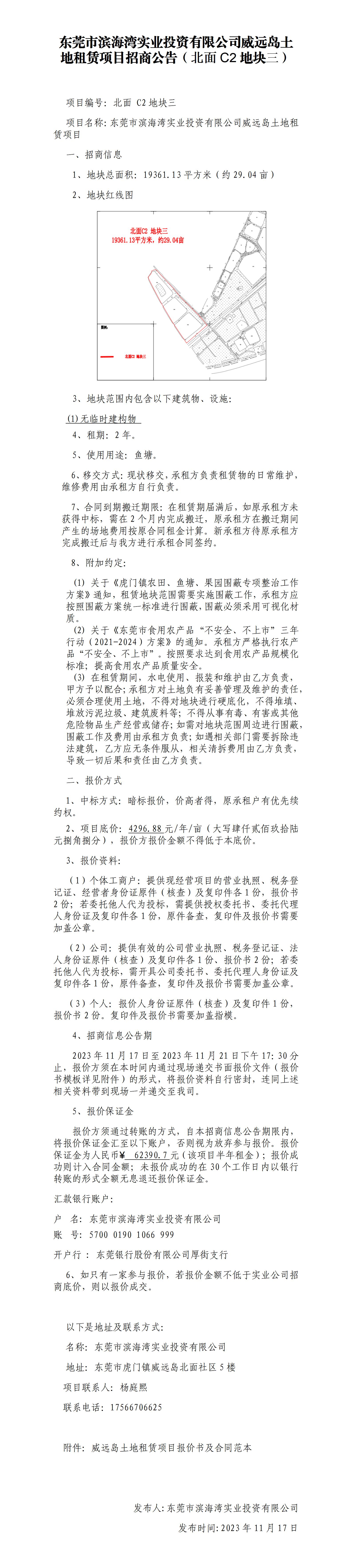 東莞市濱海灣實(shí)業(yè)投資有限公司威遠(yuǎn)島土地租賃項(xiàng)目招商公告(北面C2地塊三)