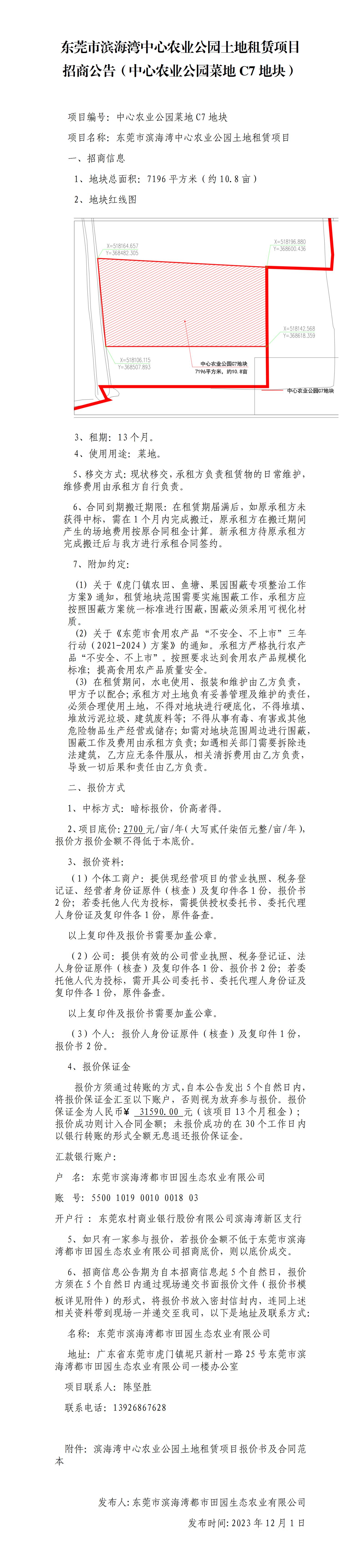 東莞市濱海灣中心農(nóng)業(yè)公園土地租賃項(xiàng)目招商公告(中心農(nóng)業(yè)公園菜地C7地塊)