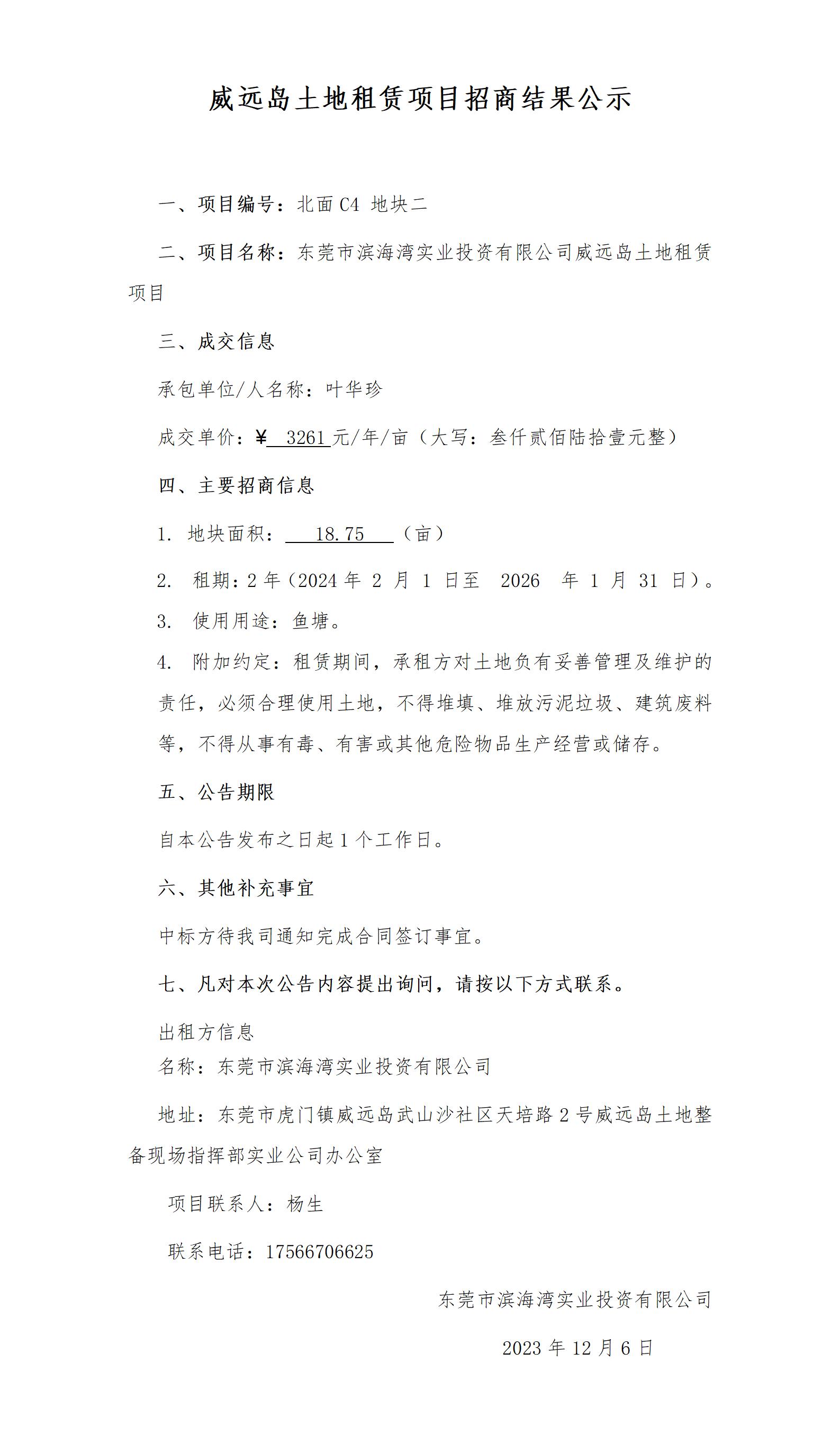 威遠島土地租賃項目招商結(jié)果公示(北面C4地塊二)