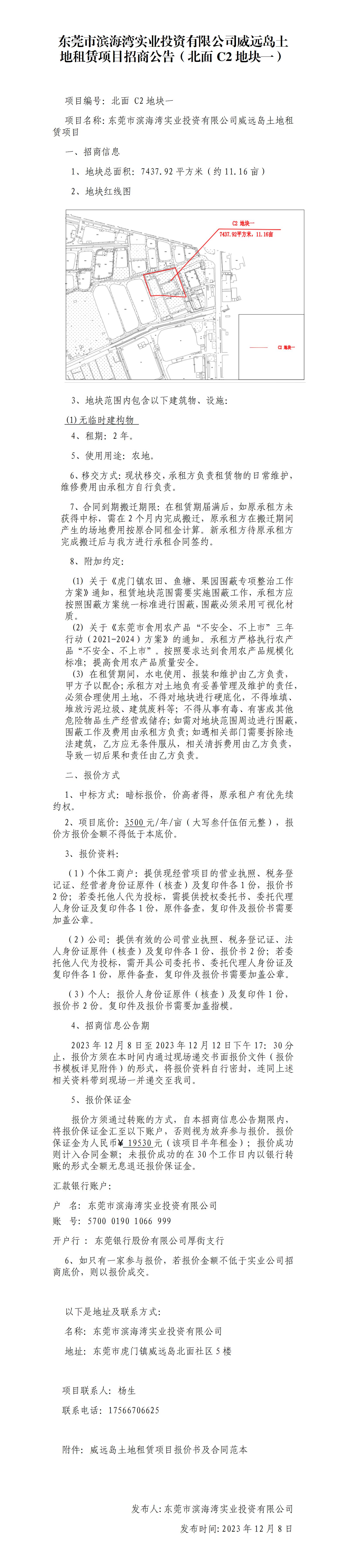 東莞市濱海灣實(shí)業(yè)投資有限公司威遠(yuǎn)島土地租賃項(xiàng)目招商公告(北面C2地塊一)