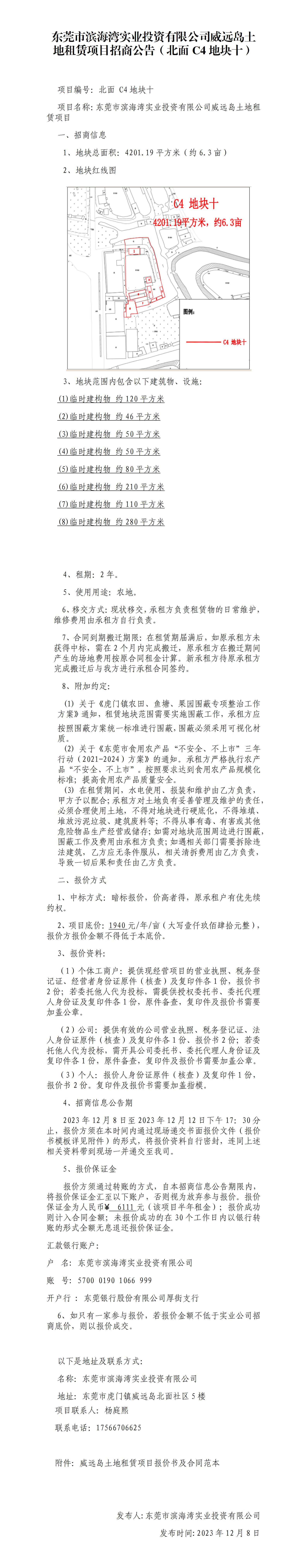 東莞市濱海灣實(shí)業(yè)投資有限公司威遠(yuǎn)島土地租賃項(xiàng)目招商公告(北面C4地塊十)