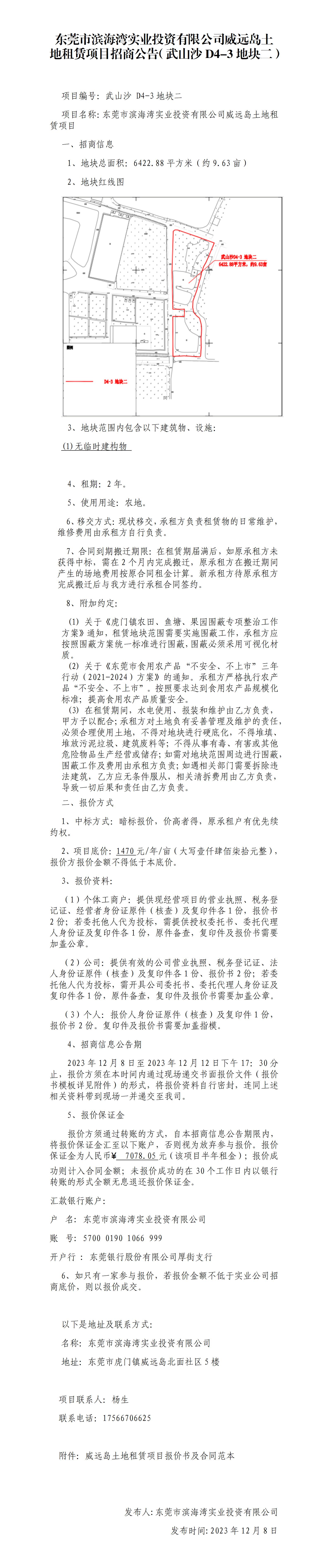 東莞市濱海灣實(shí)業(yè)投資有限公司威遠(yuǎn)島土地租賃項(xiàng)目招商公告(武山沙D4-3地塊二)