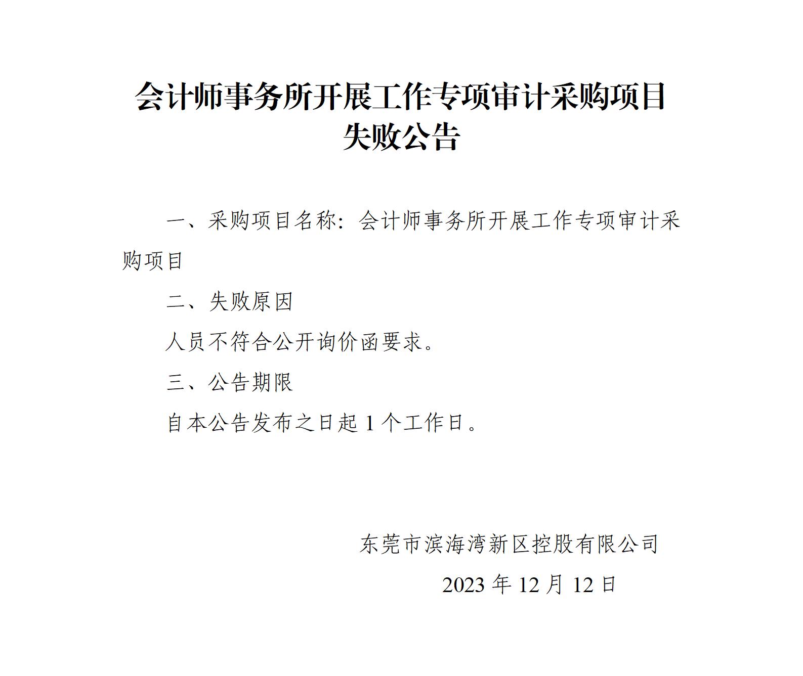 會(huì)計(jì)師事務(wù)所開展工作專項(xiàng)審計(jì)采購(gòu)項(xiàng)目失敗公告