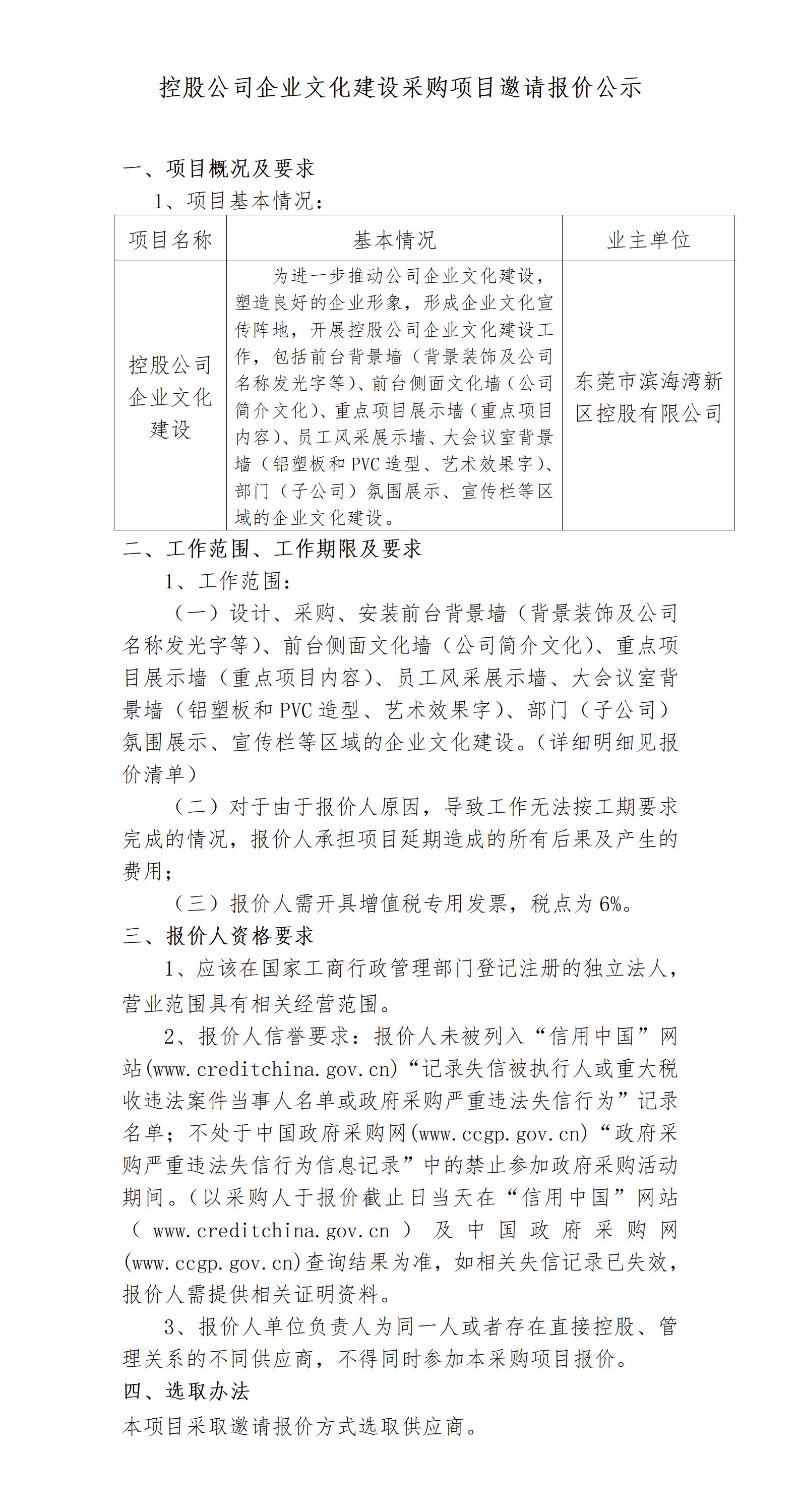 控股公司企業(yè)文化建設(shè)采購項目邀請報價公示