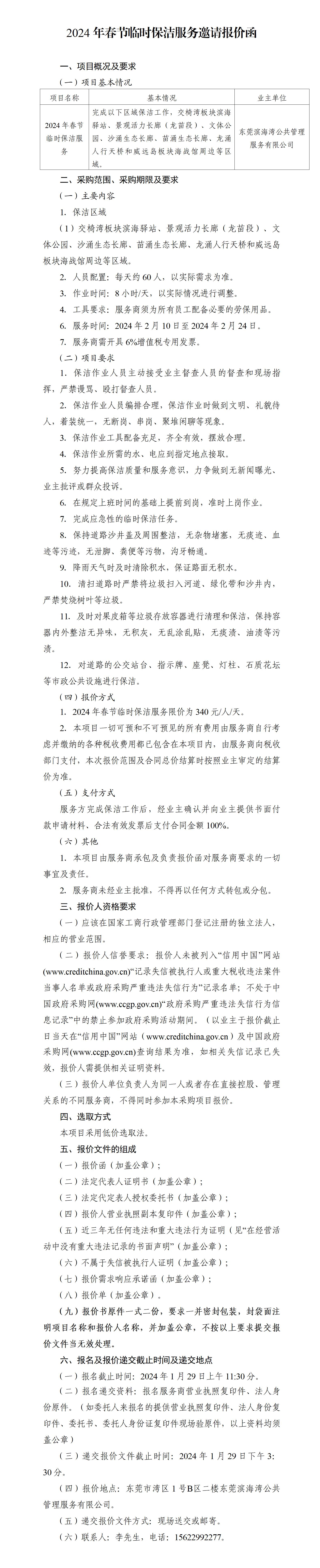2024年春節(jié)臨時保潔服務邀請報價文件
