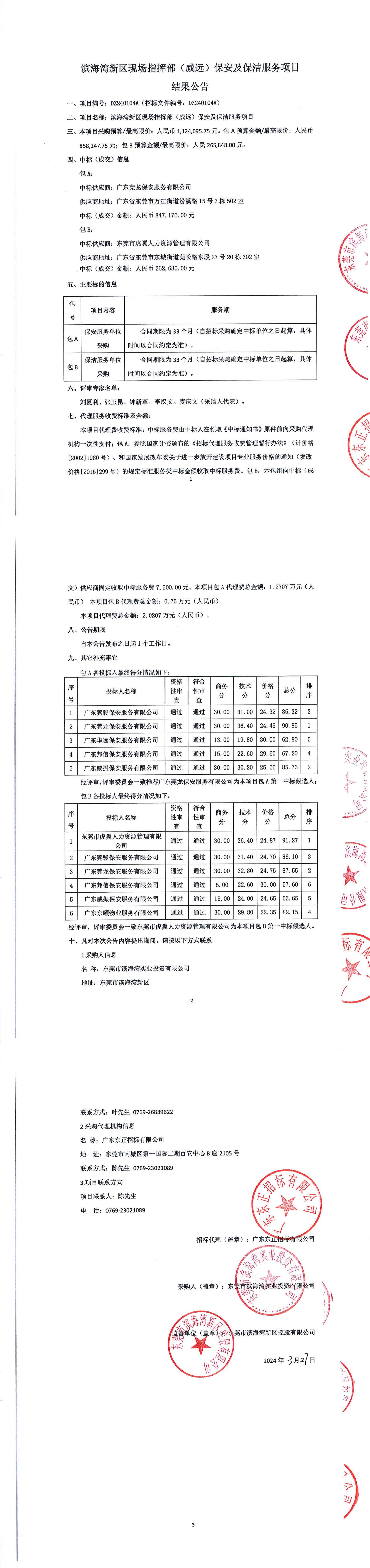 濱海灣新區(qū)現(xiàn)場指揮部(威遠(yuǎn))保安及保潔服務(wù)項目結(jié)果公告