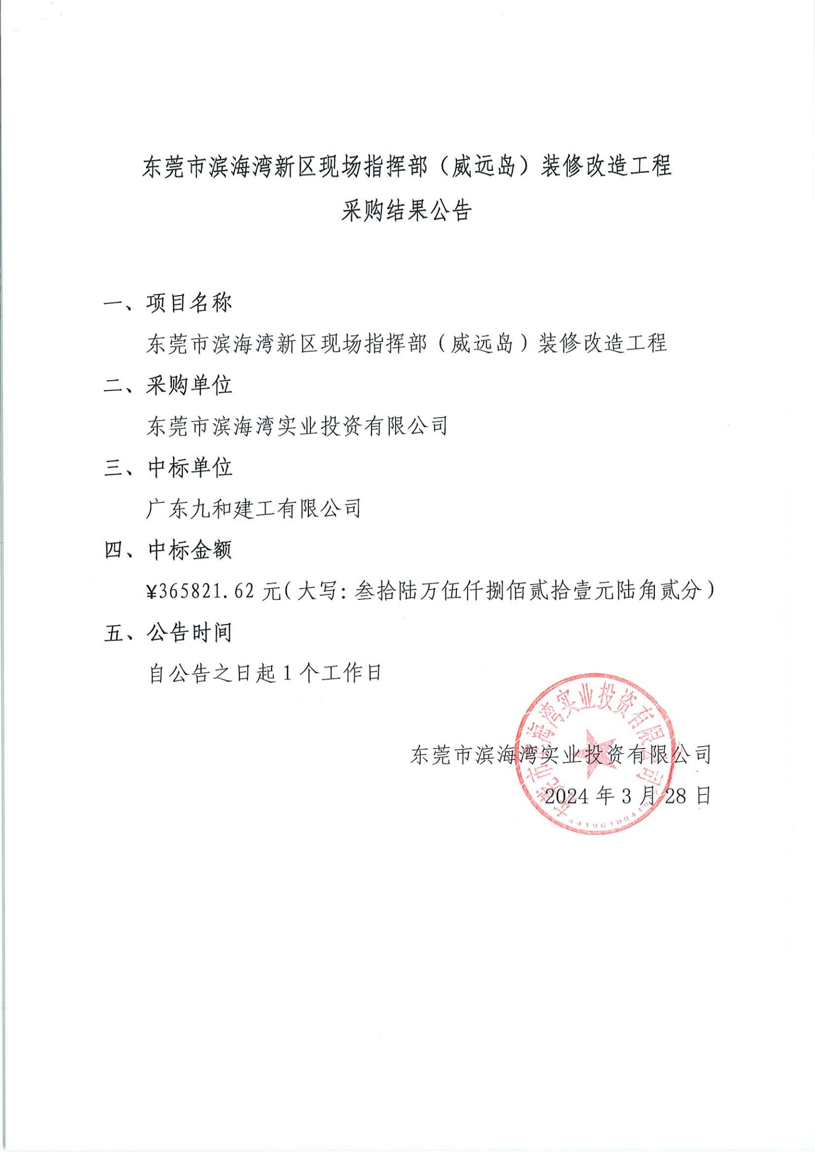 東莞市濱海灣新區(qū)現(xiàn)場指揮部(威遠(yuǎn)島)裝修改造工程采購結(jié)果公告