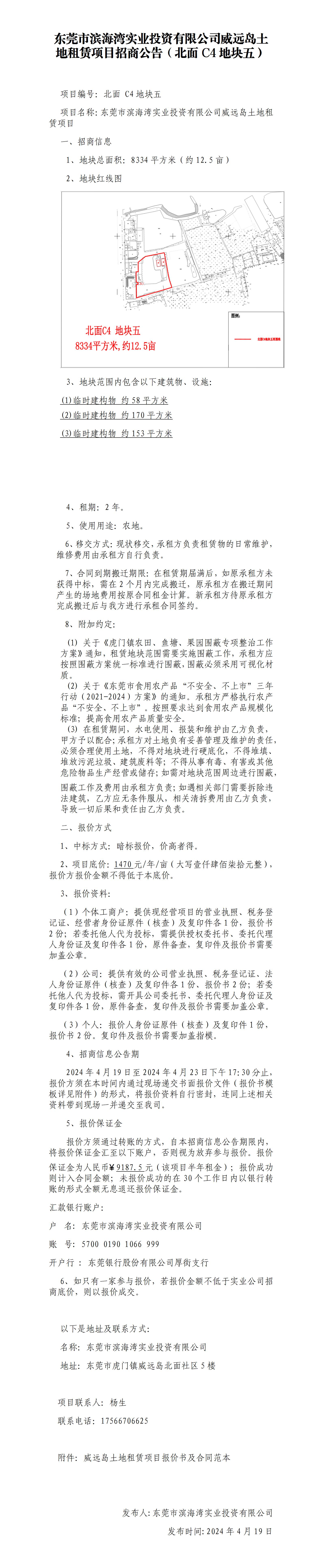威遠島土地租賃項目招商公告(北面C4 地塊五)
