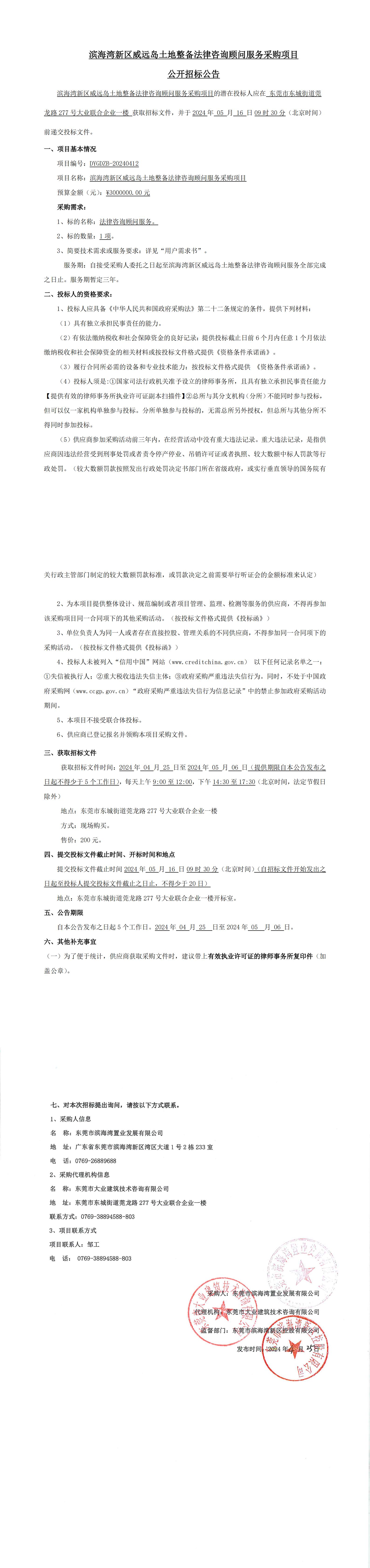 濱海灣新區(qū)威遠(yuǎn)島土地整備法律咨詢顧問服務(wù)采購項目公開招標(biāo)公告