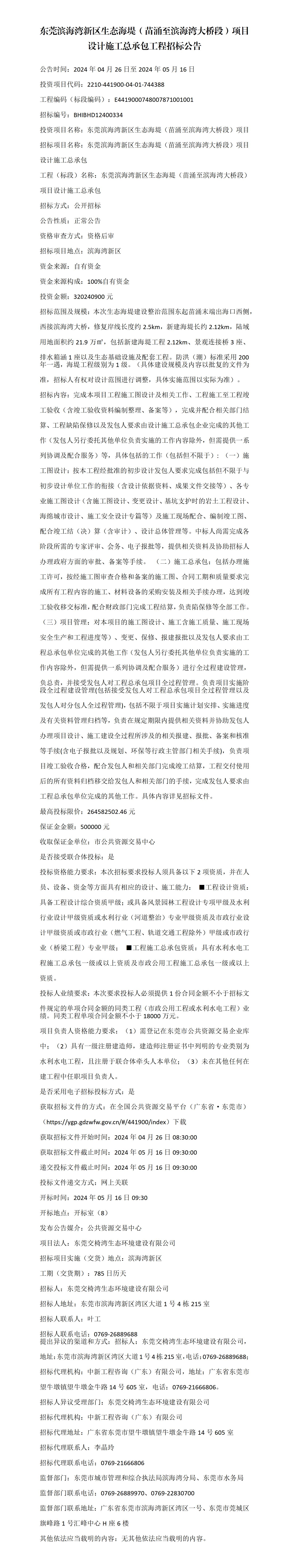 東莞濱海灣新區(qū)生態(tài)海堤(苗涌至濱海灣大橋段)項目設計施工總承包工程招標公告