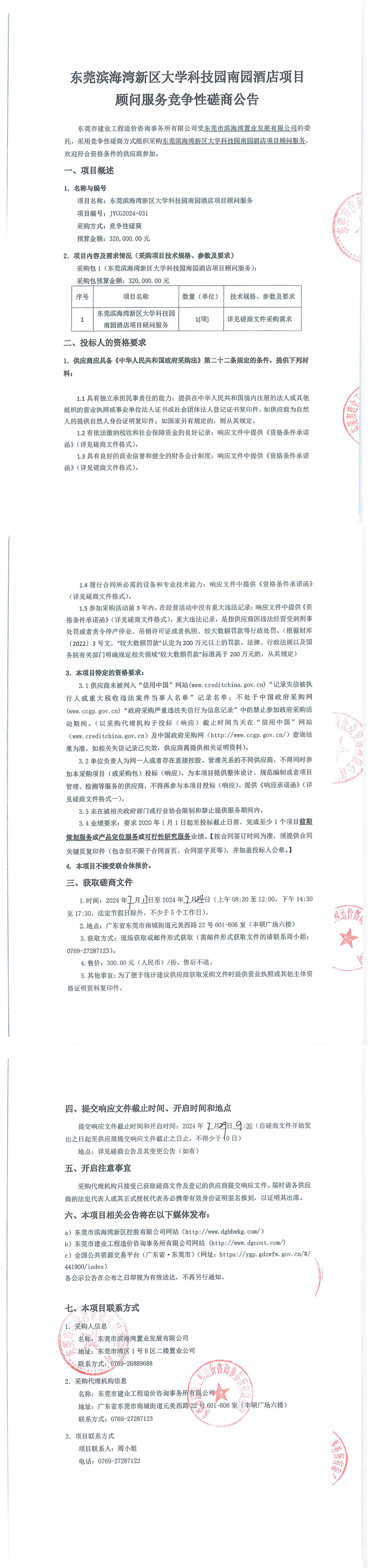 東莞濱海灣新區(qū)大學(xué)科技園南園酒店項目顧問服務(wù)競爭性磋商公告