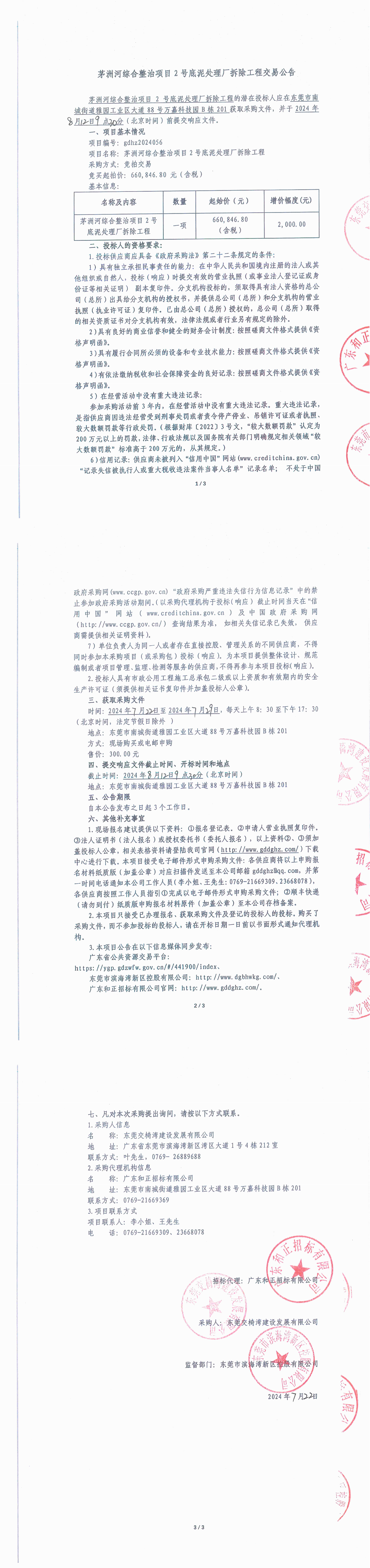 茅洲河綜合整治項目2號底泥處理廠拆除工程交易公告