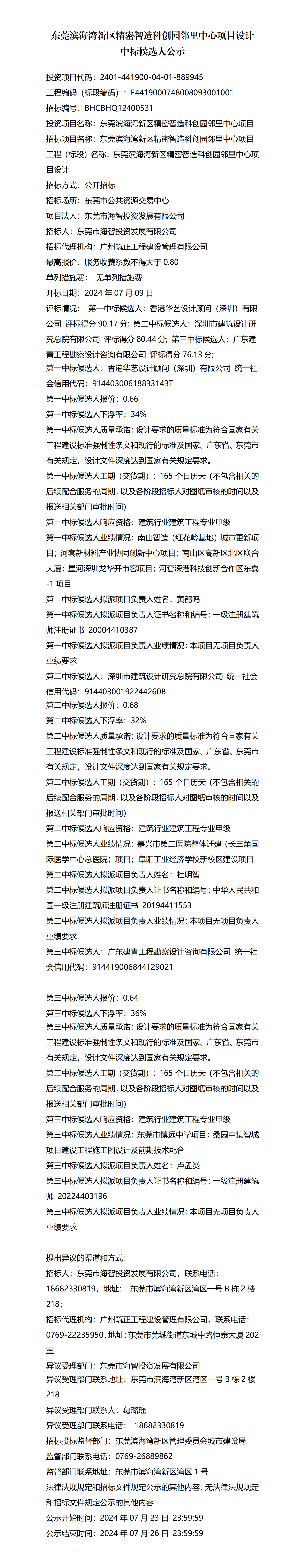 東莞濱海灣新區(qū)精密智造科創(chuàng)園鄰里中心項目設(shè)計中標候選人公示