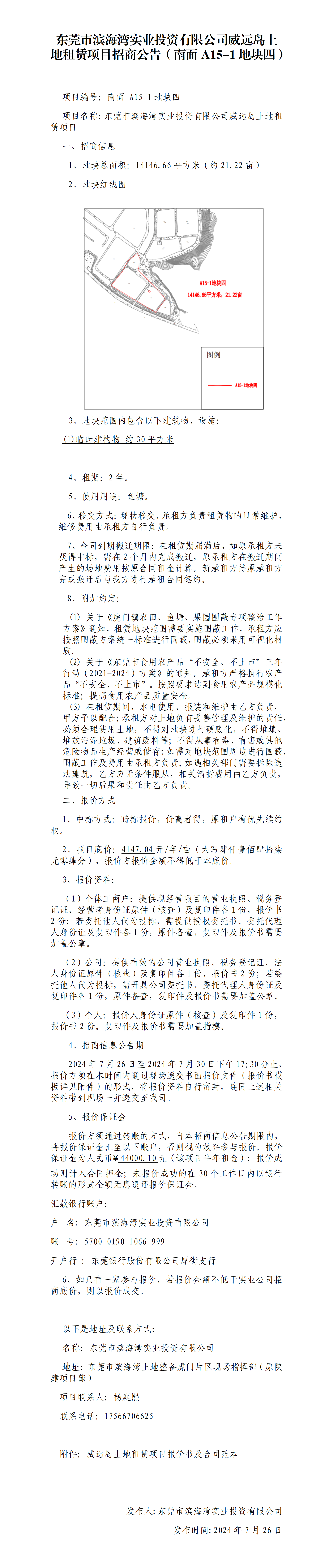 東莞市濱海灣實(shí)業(yè)投資有限公司威遠(yuǎn)島土地租賃項(xiàng)目招商公告(南面A15-1地塊四)