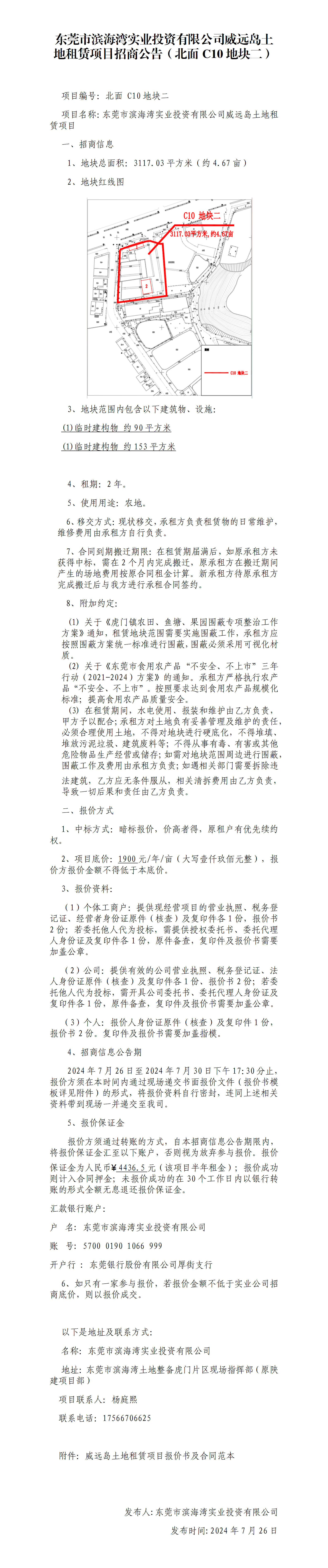 東莞市濱海灣實(shí)業(yè)投資有限公司威遠(yuǎn)島土地租賃項(xiàng)目招商公告(北面C10地塊二)