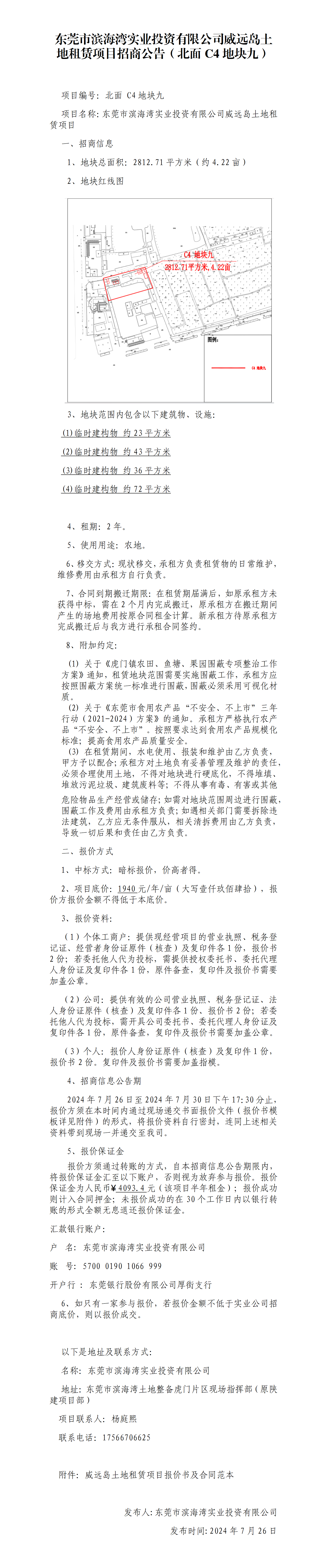 東莞市濱海灣實業(yè)投資有限公司威遠島土地租賃項目招商公告(北面C4地塊九)
